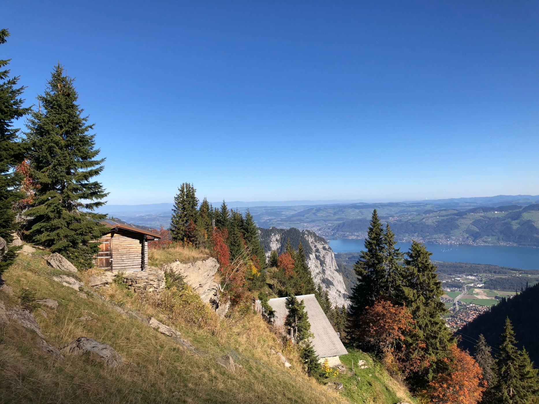 Alternativ wanderst du beim Geeri geradeaus weiter bis du die Aussichtsplattform «Hoschüpfe» erreichst. Hier erhaschst du noch einen letzten Blick über den Thunersee, bevor du über den Unteren Drunen das Gebiet Springenboden erreichst. Der Wanderweg führt dich von hier hinunter zur Talstrasse in Horboden, wo du entweder dem Talwanderweg entlang bis Oey wanderst oder mit dem Postauto ab «Horboden, Chirel» zurückkehrst.