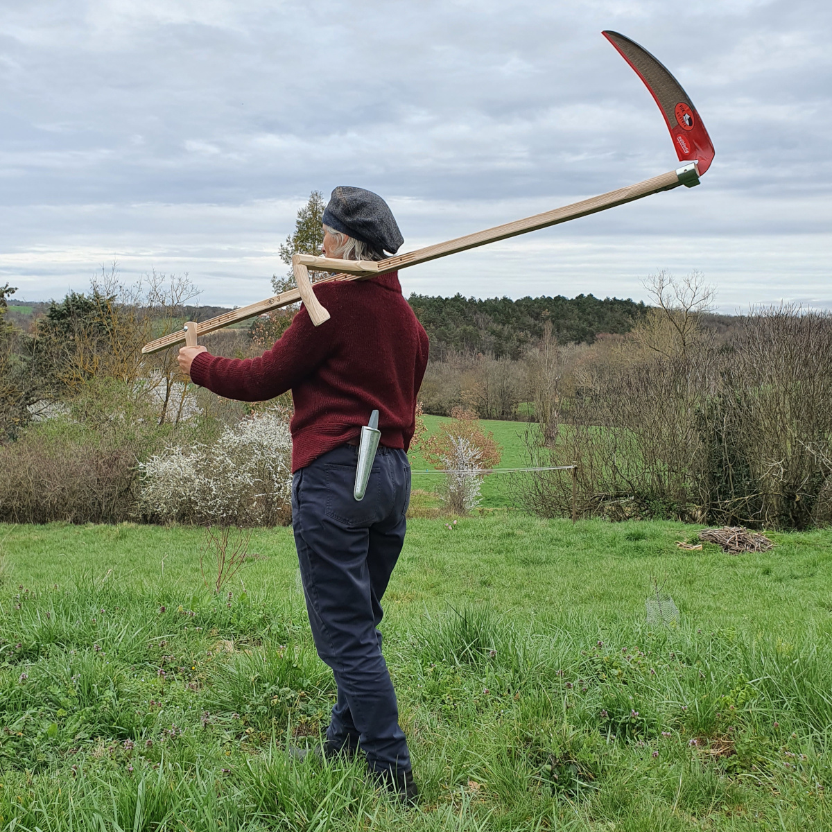 Nous disposons de quelques kit de faux mais si vous avez une faux dans votre grange ou si un voisin, un ami peut vous prêter le matériel, c'est mieux ! Le kit à avoir est une faux, une enclumette, un marteau type Rinaldi, une pierre à aiguiser avec son support.