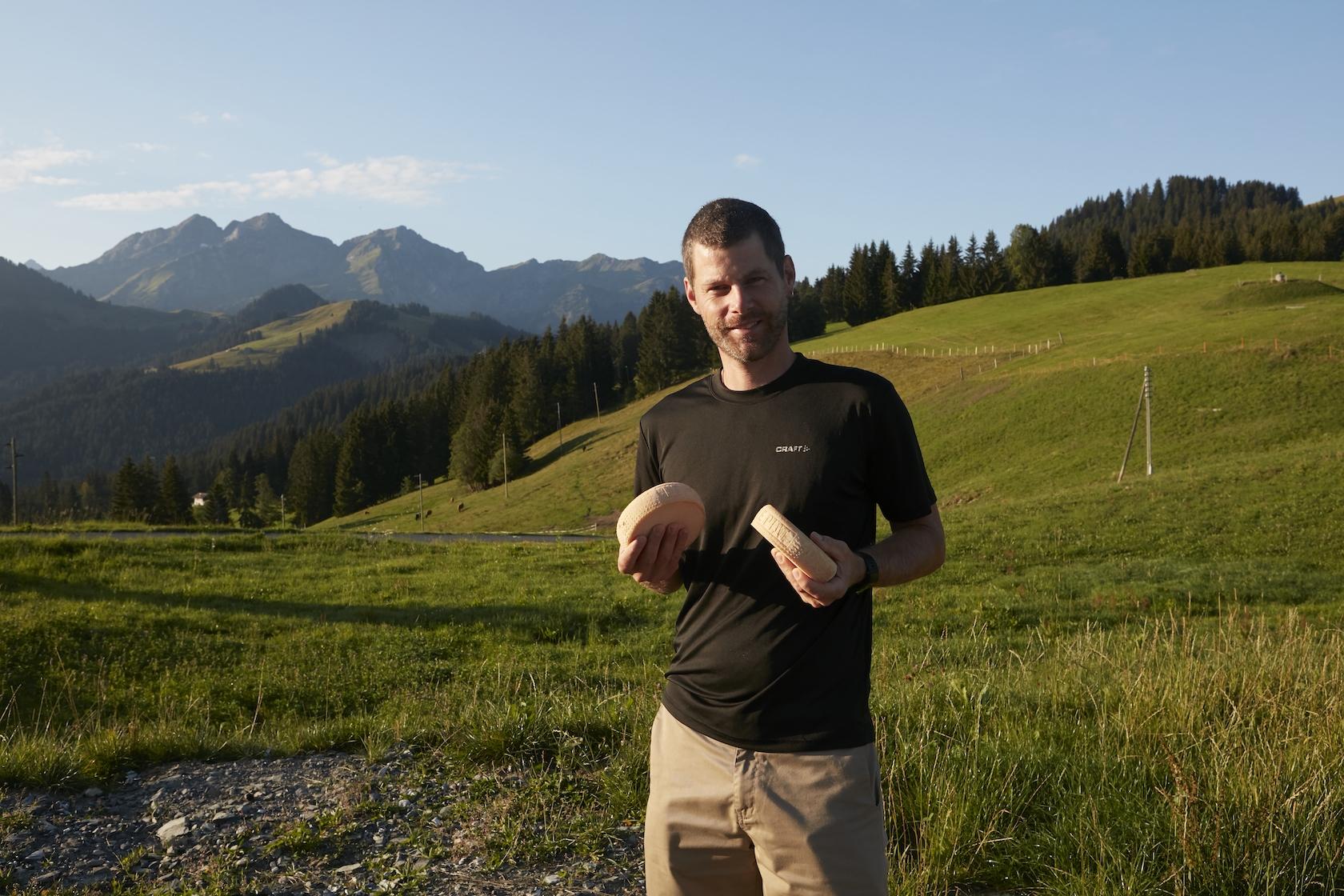 Parc naturel régional Gruyère Pays-d'Enhaut - Fabrice Isoz bewirtschaftet den Hof von La Sciaz in La Lécherette, der auf 1450 Höhenmetern, oberhalb der Gemeinde Château-d’Œx, gelegen ist. Etwa zwanzig Kühe liefern die Milch, die für die Herstellung seiner Hofspezialität Le Piat benötigt wird. Der Piat ist ein Weichkäse mit geschmierter Rinde, der sonst nirgends im Pays-d’Enhaut zu finden ist. Im Winter wird die monatliche Produktion von bis zu 250 Käsen ebenfalls zu Tartipiat verarbeitet, einer Tartiflette nach damounaiser Art. Diese wird dann den Skifahrern der Waadtländer Alpen angeboten.