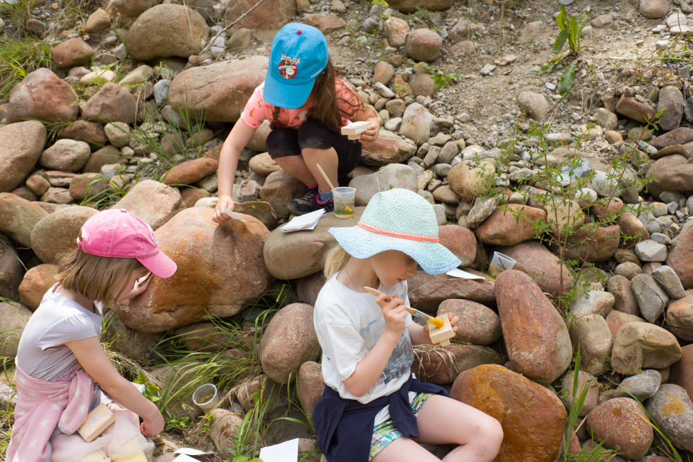 Viele Pflanzen um uns enthalten Farbstoffe. Diese werden gesammelt, sortiert und verarbeitet, teilweise auf dem Feuer. Die gewonnenen Pflanzensäfte werden anschliessend zum Malkasten aus Naturfarben.