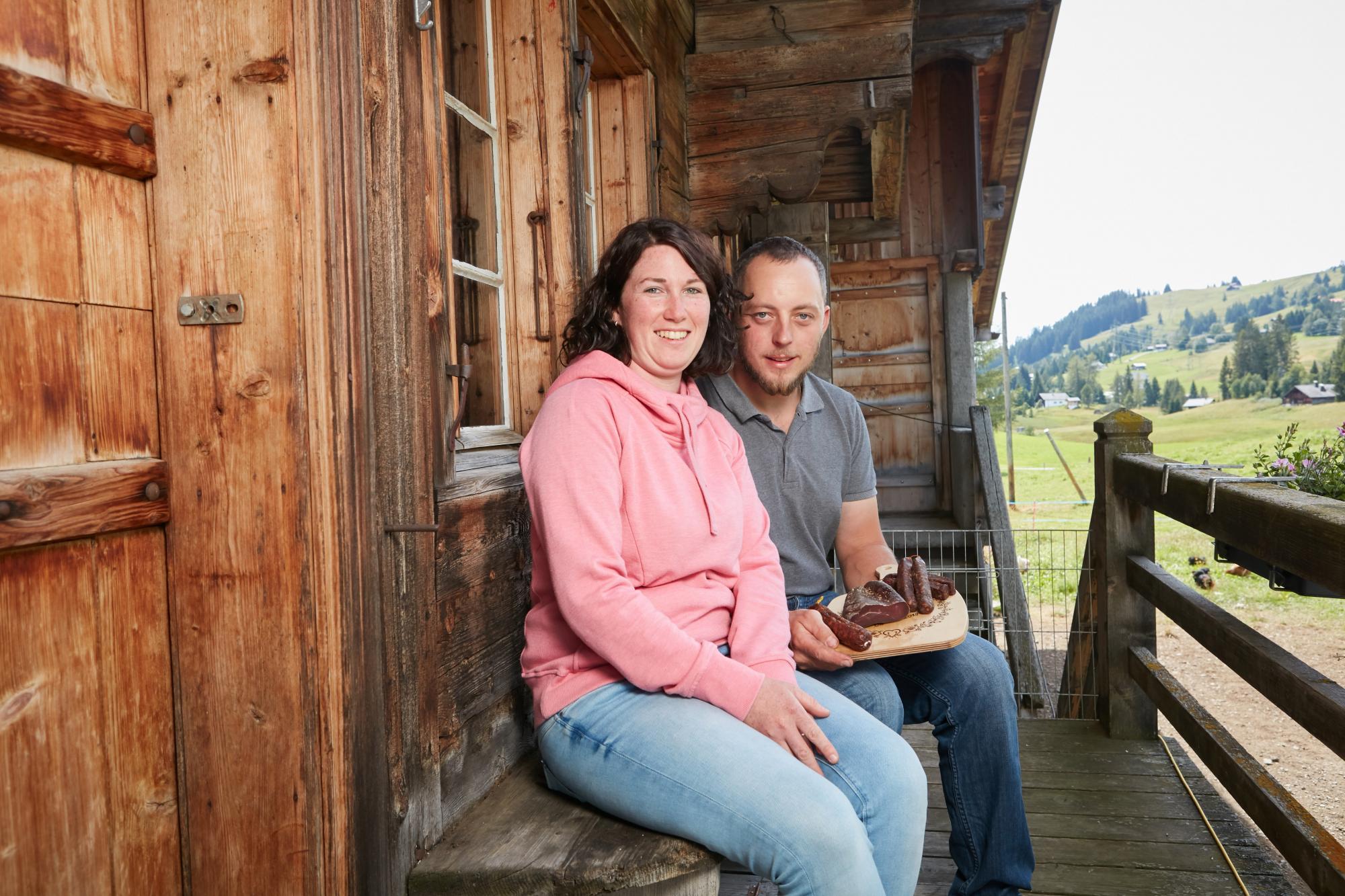 Parc naturel régional Gruyère Pays-d'Enhaut - Als Steeve Daenzer 2016 den familiären Milchwirtschaftsbetrieb übernimmt, entscheidet er, sich der Milchkuhhaltung zuzuwenden. Die Idee, ein Produkt anzubieten, das er von der Weide bis auf den Teller mitverfolgt hat, beschäftigt ihn schon lange. Steeve und seine Frau Caroline schaffen Kühe der Rasse Salers an, eine robuste Fleischrasse mit ausgeprägtem Mutterinstinkt. Seit 2017 stellen sie so allmählich eine neue Herde zusammen, die zurzeit 45 Tiere zählt.
