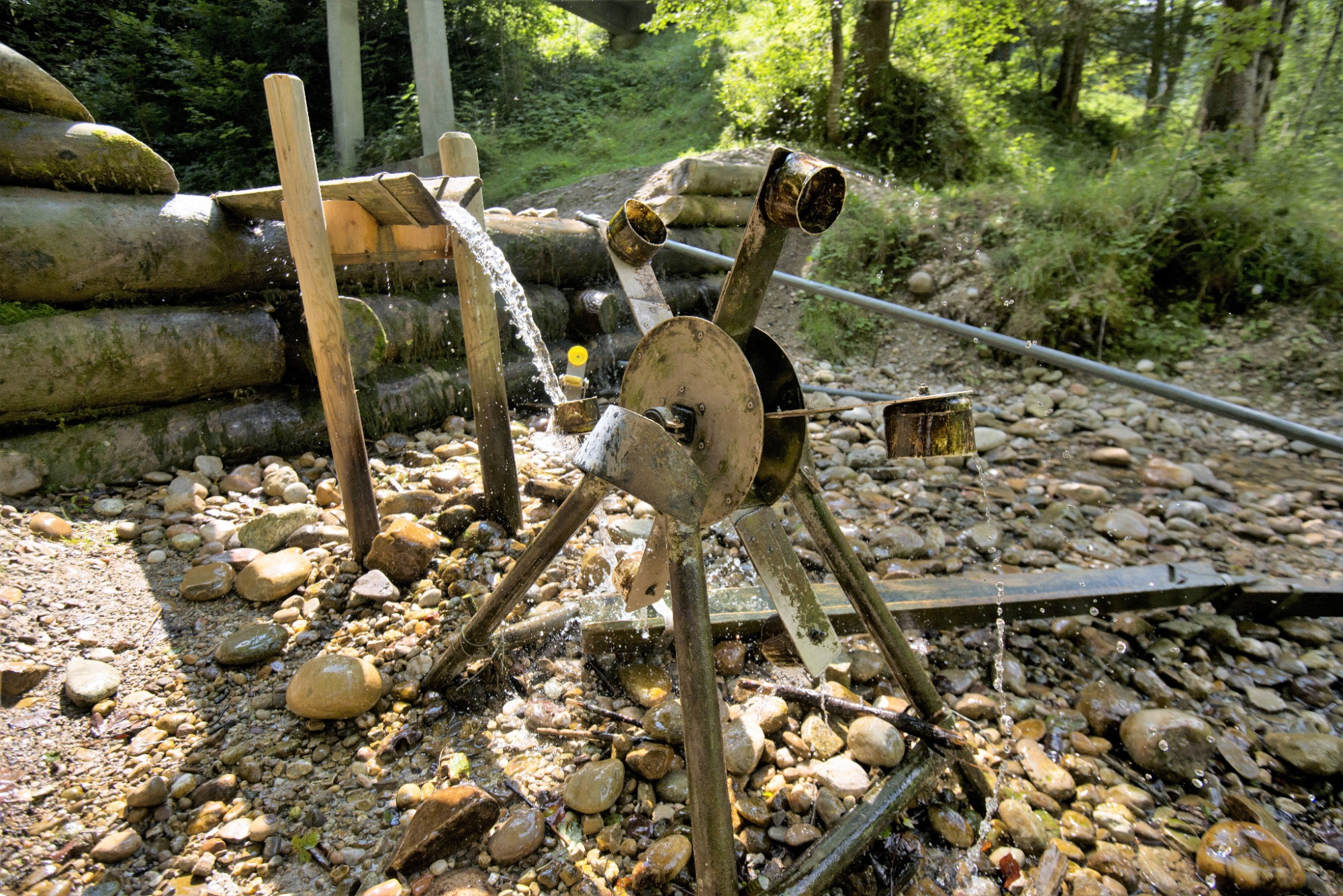 Auf der Suche nach den geheimnisvollen Bärgmandli entdecken Eltern und Kinder schon bald die ersten Spuren, welche den Weg auf dem Wanderweg Bärgmandli-Tritt weisen. Immer wieder machen die Bärgmandli mit kleinen roten Füsschen auf sich aufmerksam und führen die neugierigen Kinder durch die schönste Natur zu den Spielwelten. Die Kinder erobern die Talherrenburg, kriechen durch Weidentunnel oder leiten den Mühlibach auf verschiedenste Art und Weise um. Die 30 Meter lange Kugelbahn, genannt Zyberlibahn, bereitet auch viel Spass. Im Baumlabyrinth Eschenhaus suchen die Kinder nach dem richtigen Weg.