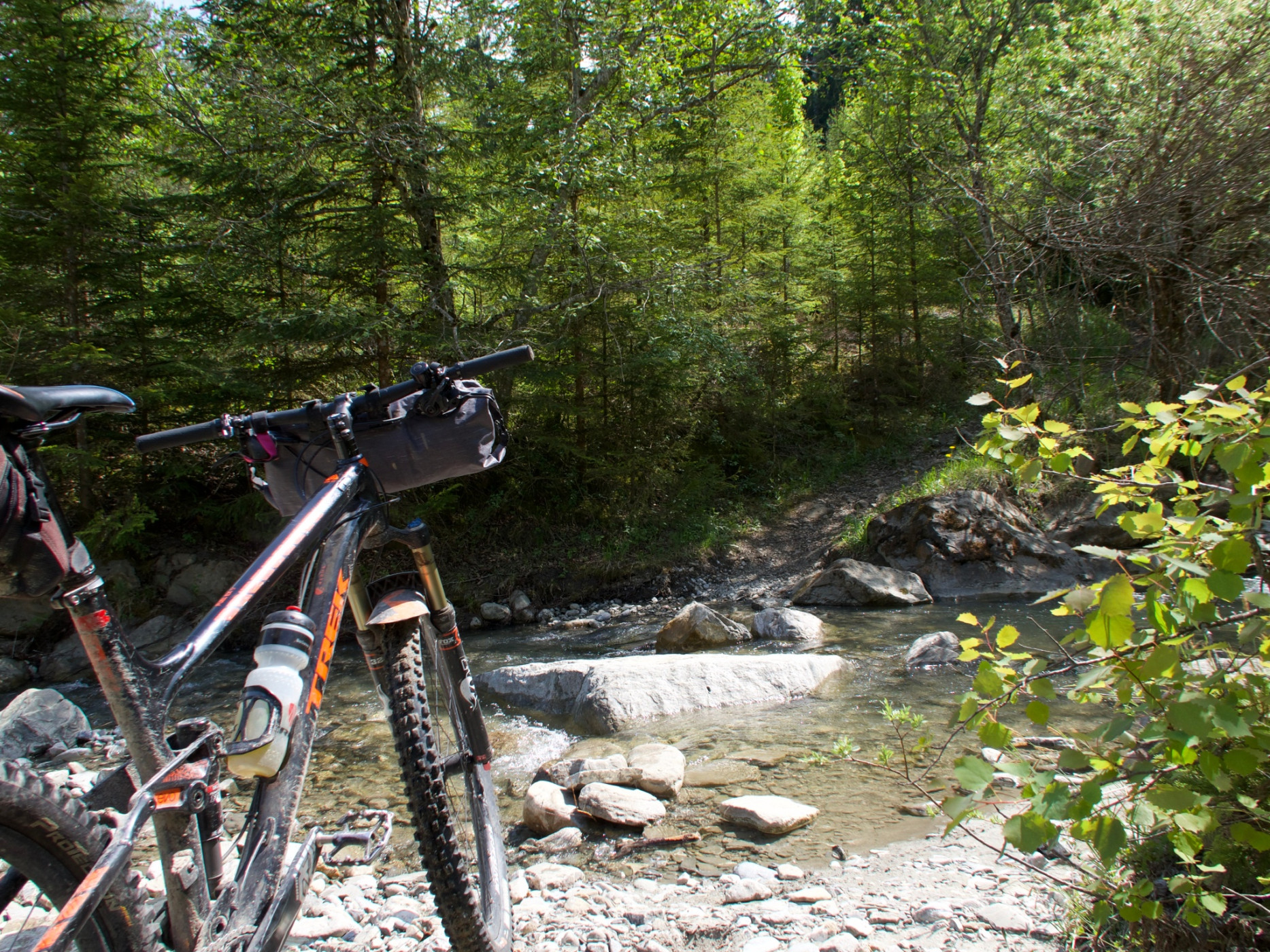 Ein langer Kiesweg führt weiter talwärts. Der Übergang über die Gürbe ist dann das letzte Hindernis: Einige fahren mit ihrem Mountainbike einfach durchs Wasser. Die meisten ziehen es vermutlich vor, das Bike zu tragen und über die Steinplatten zu gehen.