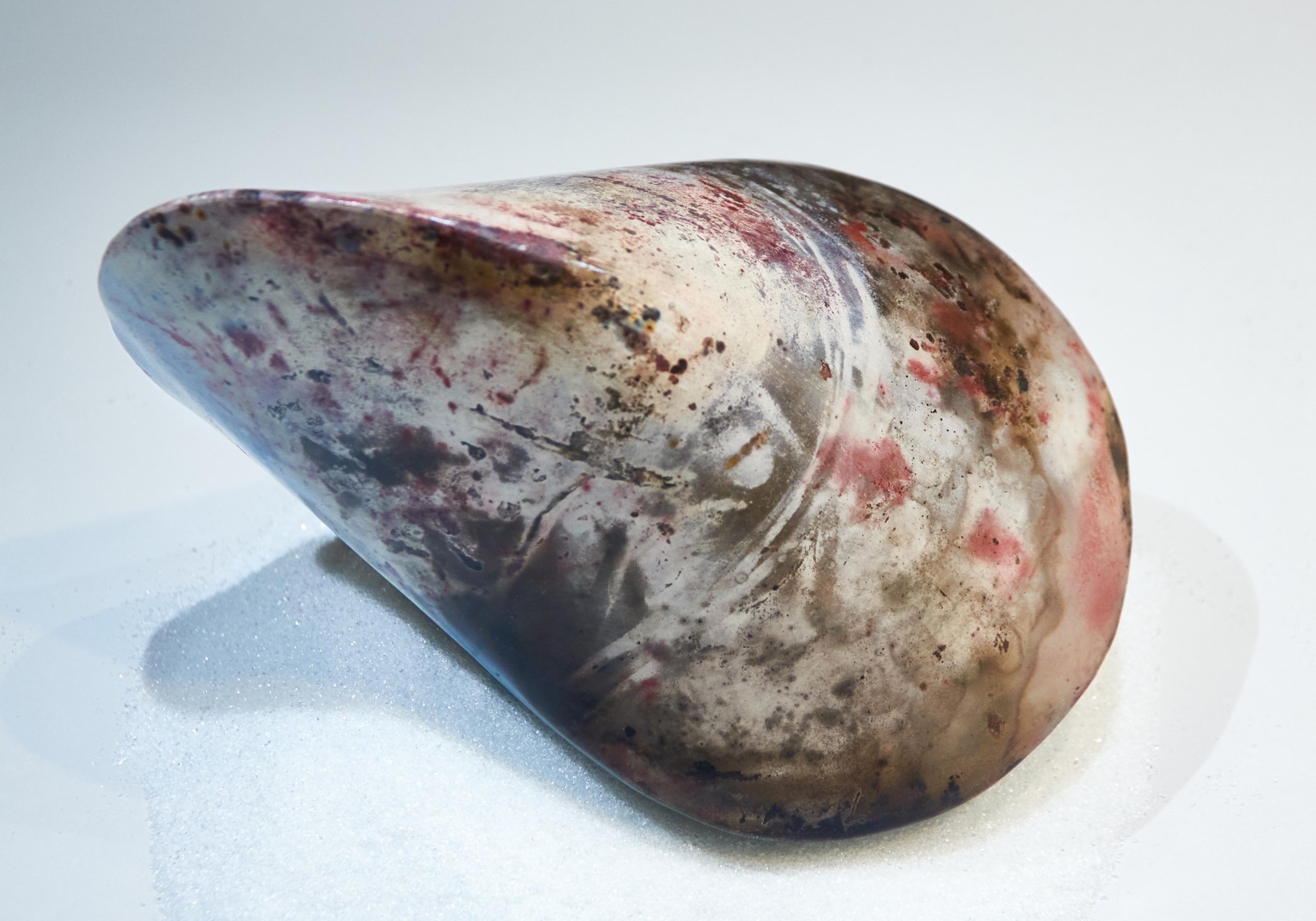 Naturpark Thal - Zsuzsa Schneider präsentiert im Gewölbekeller des Keramikmuseums polierte Figuten und geometrische Keramiken mit Fokus auf fein bearbeiteten Oloiden.