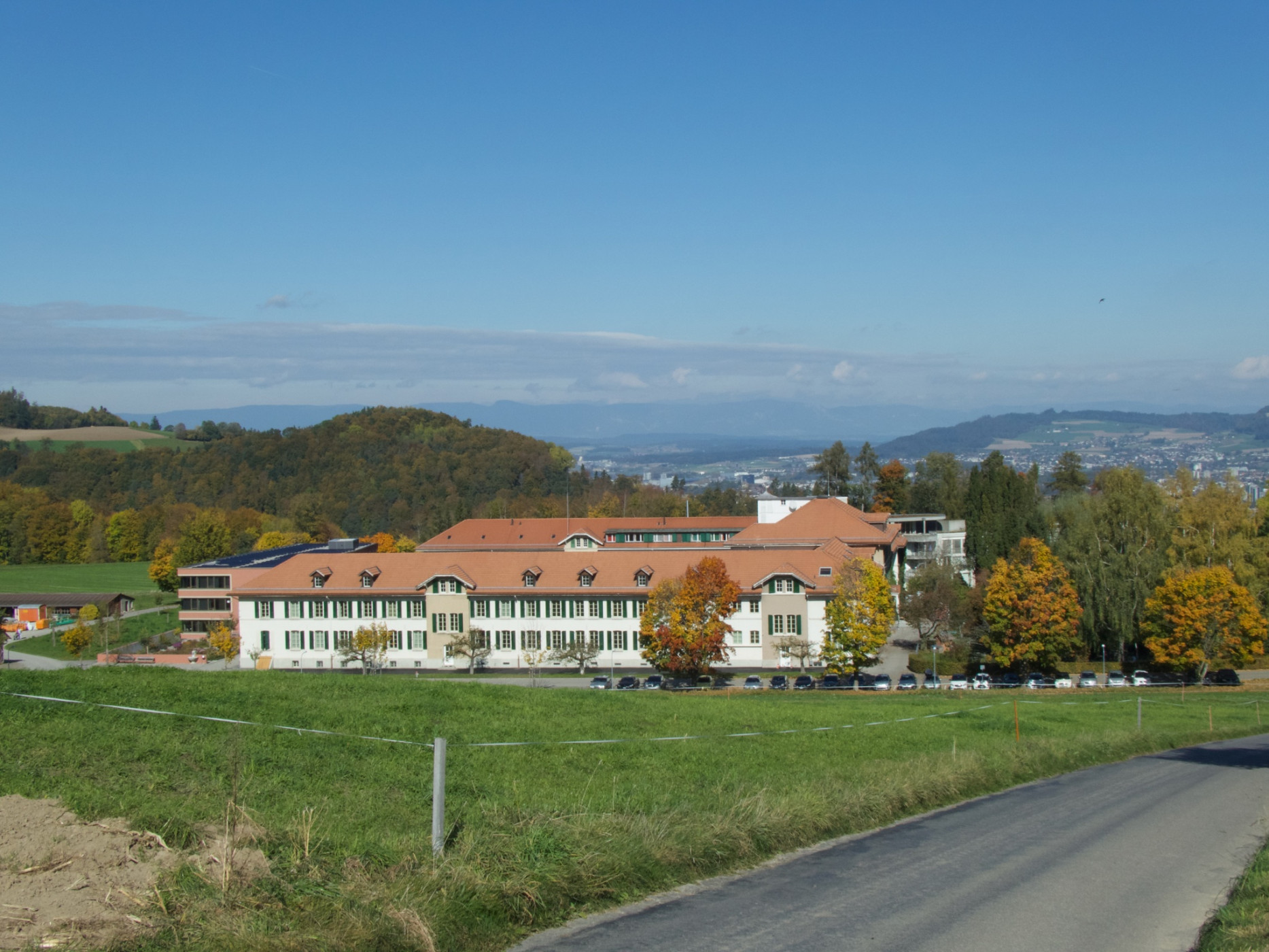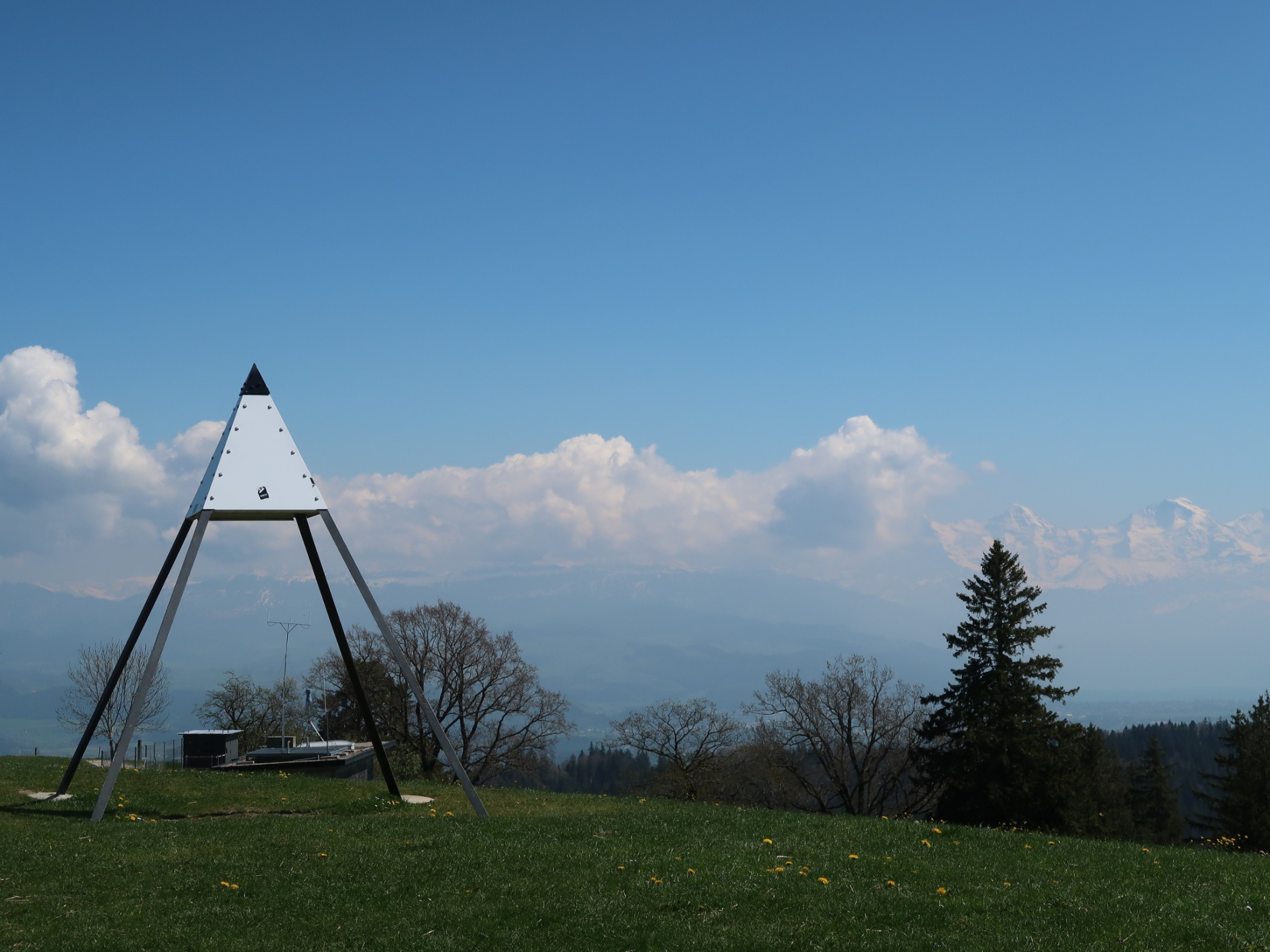 Vom Swiss Bike Park in Oberried fährt man hinab in die Grabemüli und wiederum hoch nach Niederscherli, zum ersten Aussichtspunkt auf der Terrasse des Wasserreservoirs Weidli.