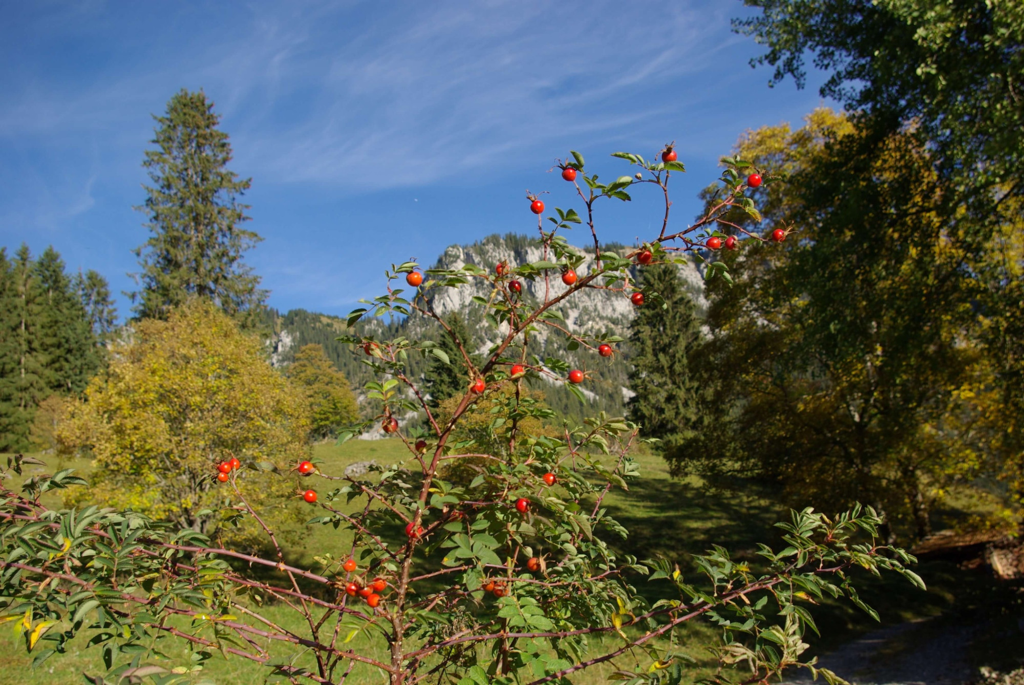Naturpark Diemtigtal - Wenn die Wildrosen im Herbst ihre Früchte tragen, ist dies die beste Zeit für deren Bestimmung. Glück hast du, wenn du Blüten und Früchte am gleichen Strauch antriffst.