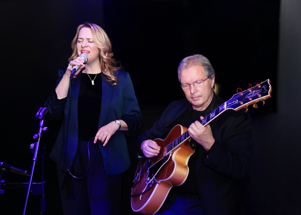 Der Badener Jazzgitarist Beat Baumli und die Münchner Jazzsängerin Stefanie Tornow spielen "Merry Christmas around the World", ein Weihnachtskonzert in der kultSCHÜÜR Laufenburg.