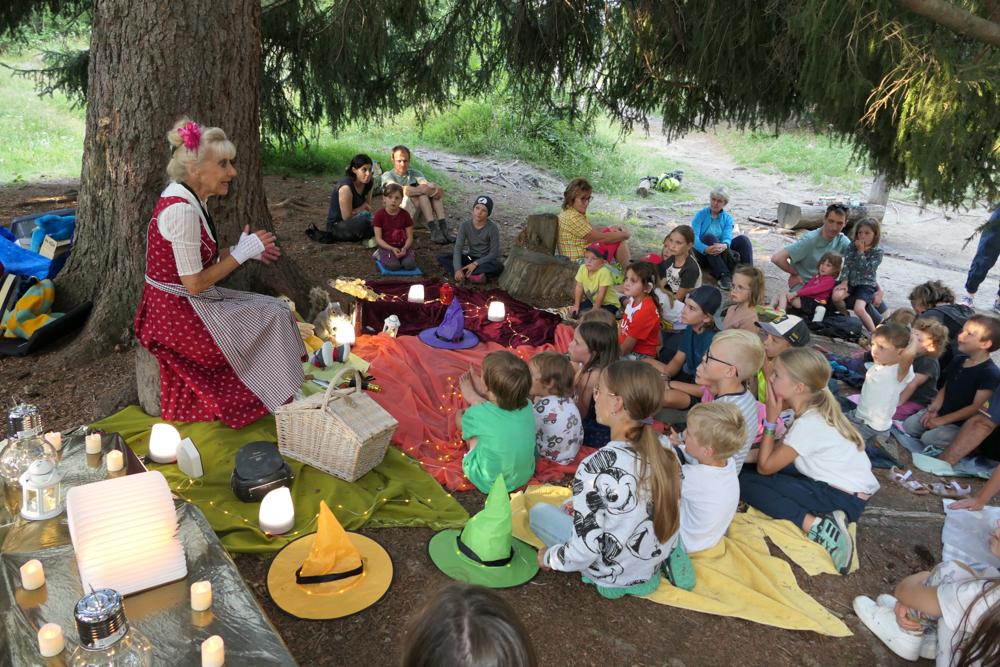 Landschaftspark Binntal - Taucht ein in die zauberhafte Welt des Märchenwaldes! Kinder und ihre Eltern begeben sich gemeinsam mit der Märchenerzählerin Astrid auf eine fantasievolle Reise voller magischer Geschichten.