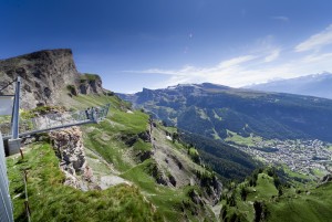 Von hier aus ragt die trapezförmige, filigrane Stahlkonstruktion rund zehn Meter über die Felswand hinaus. (Quelle: gemmi.ch)