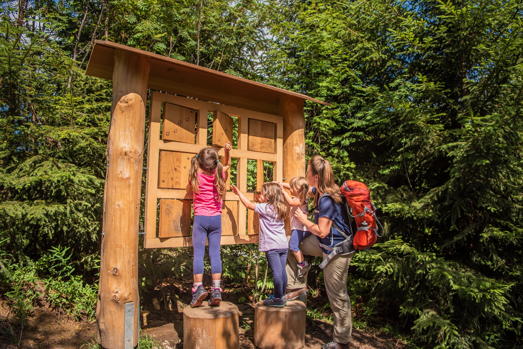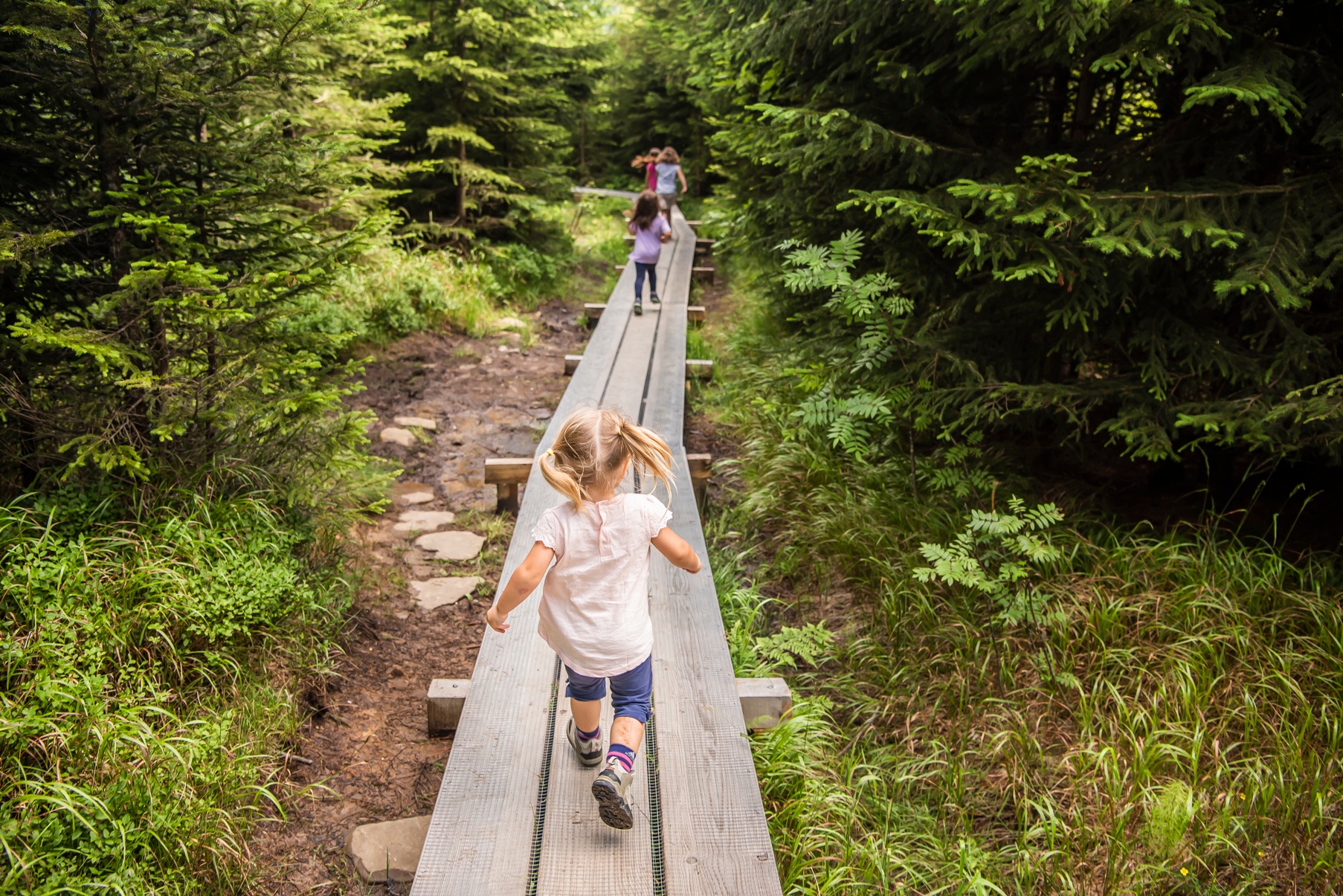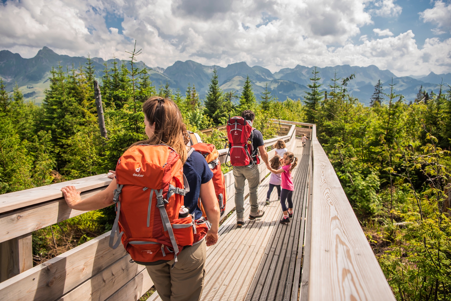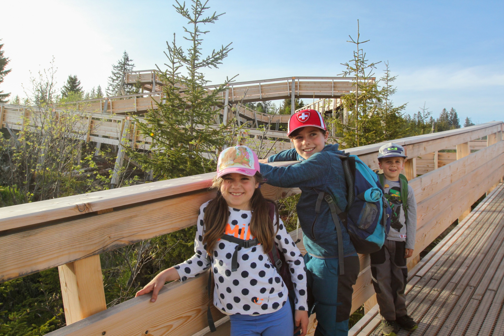 Naturpark Gantrisch - Der Familienweg ist eine leichte Rundwanderung, die über den bis zu acht Meter hohen Gäggersteg führt. Die Begleitgeschichte «Der wilde Türst – das stürmische Spiel am Gägger» führt dich und deine Eltern entlang von acht Stationen.