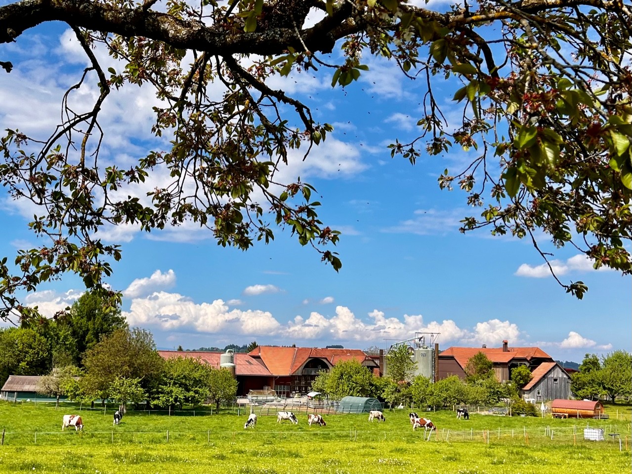 Der Bauernhof ist lebendig und naturnah. Kühe, Lamas, Katzen und zwei Sennenhunde prägen den Alltag. Auf Anfrage bietet ein Hofrundgang Einblicke in das Leben auf dem Hof und schafft besondere Momente für Kinder und Erwachsene. Wer noch tiefer in die Umgebung eintauchen möchte, kann ein Lamatrekking dazubuchen.