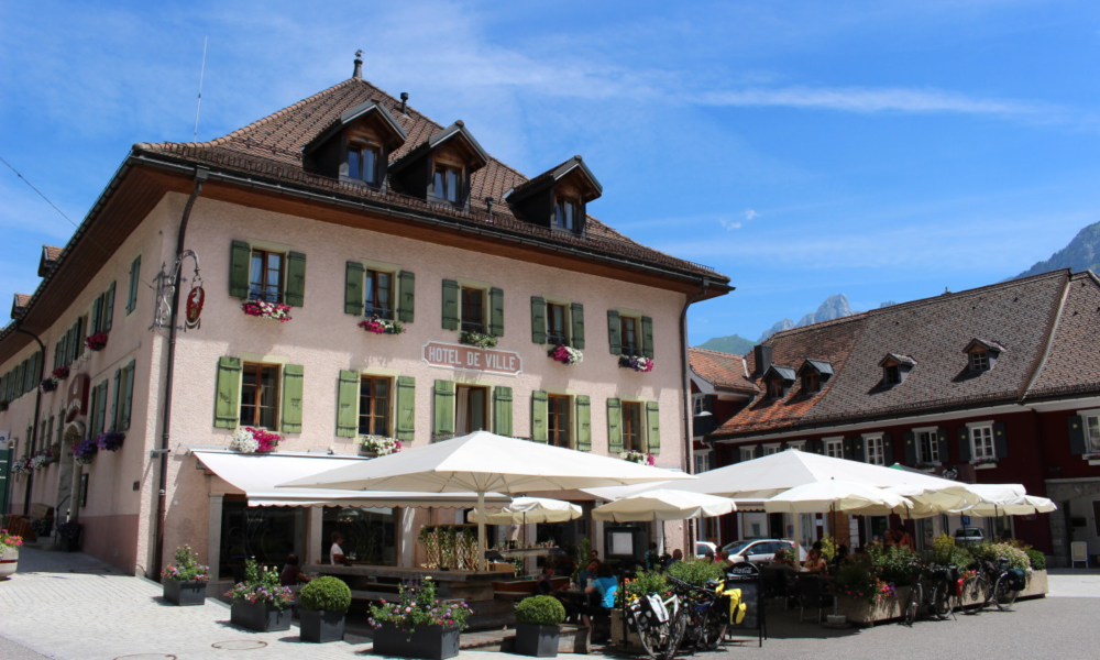 Das Hôtel de Ville ist eine sympathische Gaststätte im Zentrum des schönen Dorfes Château-d'Oex, nur 3 Gehminuten vom Bahnhof entfernt. Gemütliche, gepflegte Zimmer mit komfortablen Betten und Badezimmer mit Dusche oder Badewanne. Besuchen Sie unser Restaurant "Le Bistrot", oder lassen Sie sich an der Bar oder auf der Terrasse des "Caribou Bar Lounge" einen Drink servieren. Château-d'Oex ist der ideale Ort für einen erholsamen Aufenthalt in authentischer Schweizer Atmosphäre.