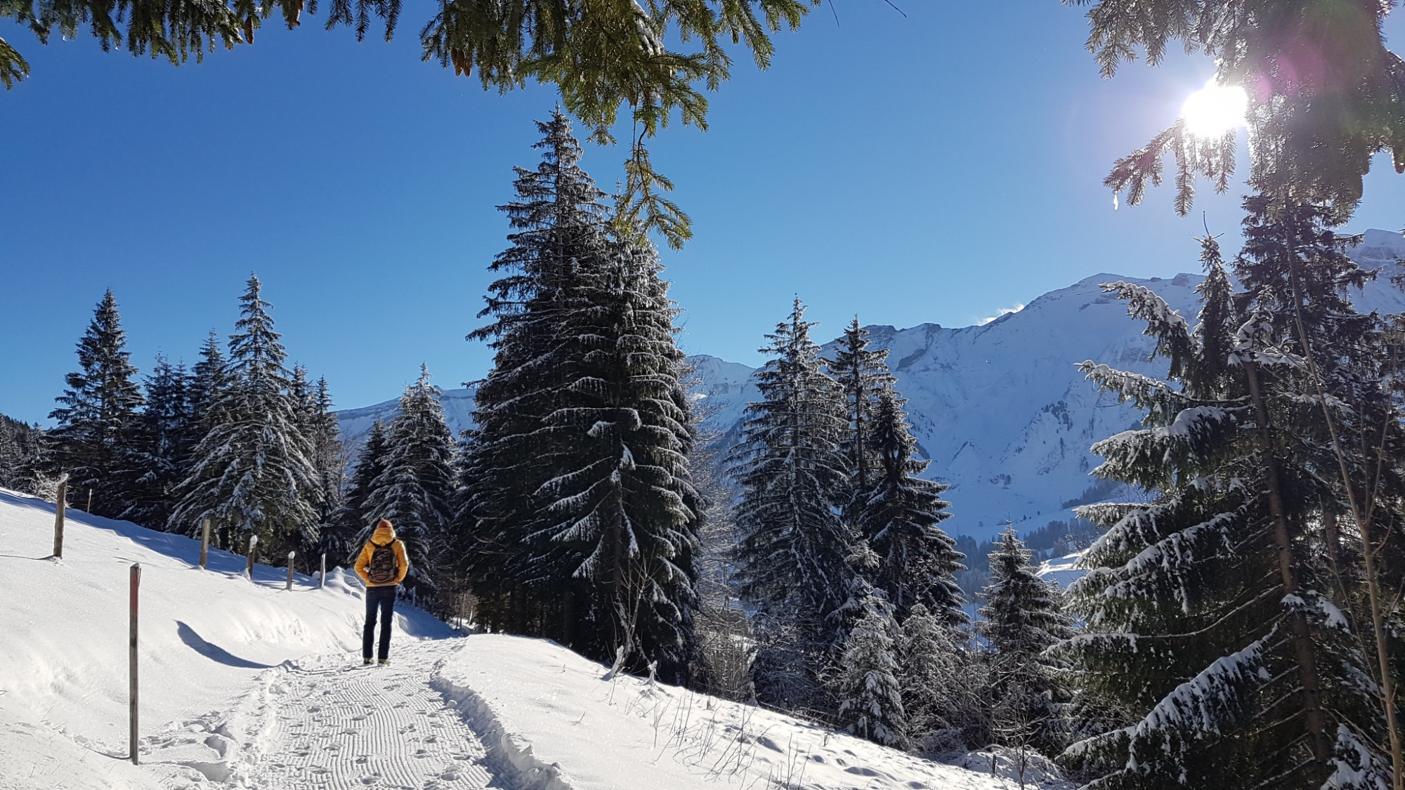 Geniessen Sie diese einfache Wanderung auf der Sonnenseite von Sörenbergmit herrlicher Panorama-Aussicht auf die umliegende Bergwelt. Vom Dorfkern Sörenberg führt der Panorama-Rundweg an der Kirche vorbei zur Alpweid, wo man bereits den höchsten Punkterreicht hat. Hier wartet zugleich ein Alpkiosk für eine Stärkung nach dem Anstieg. Auf einem der vielen Ruhebänkli können Sie die Winterlandschaft geniessen. Von der Alpweid wandert man weiter durch den bewaldeten Südhang der Hagleren und durch das Bergsturzgebiet Laui zurück ins Dorf.