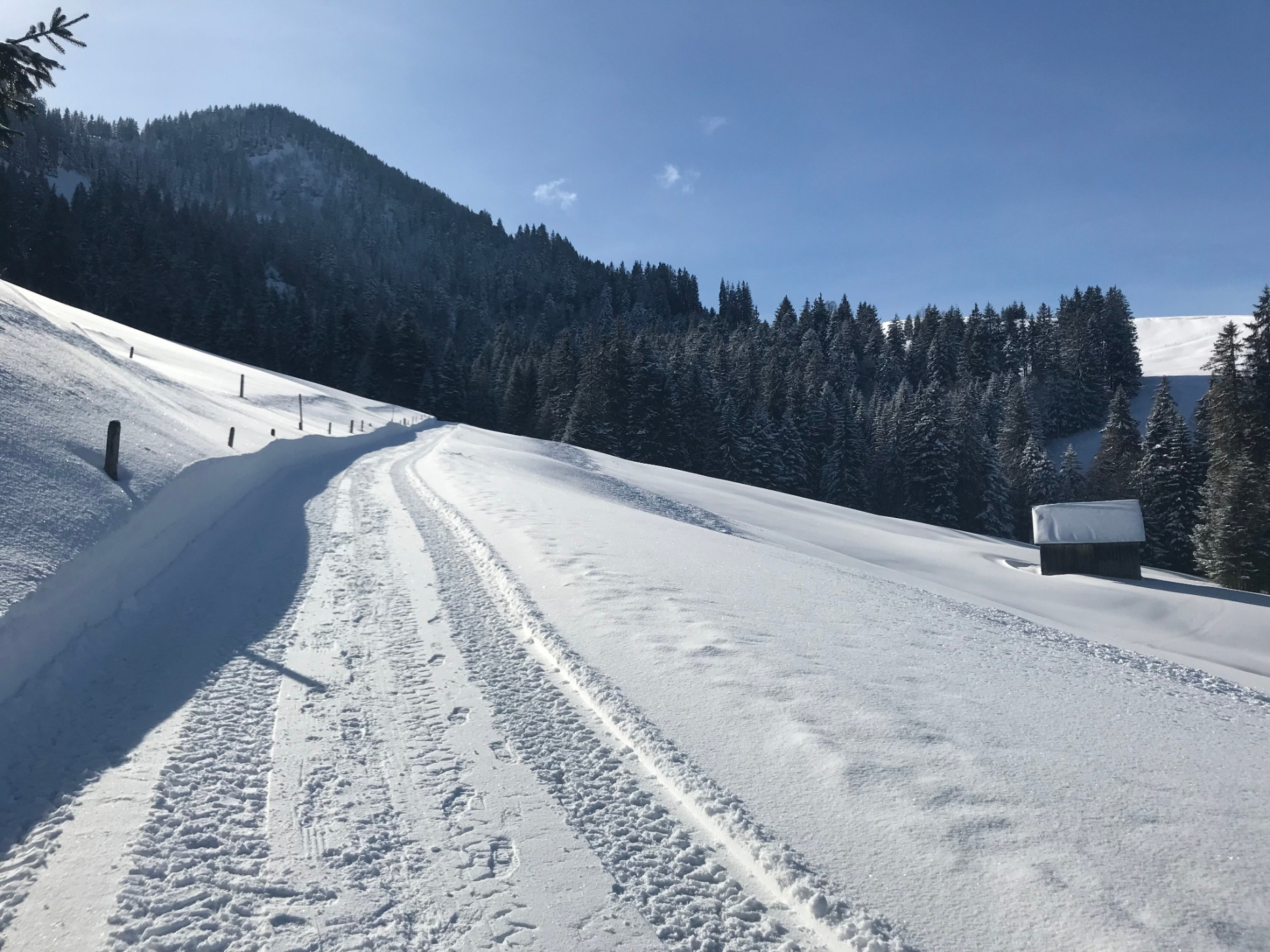 Nach einem feinen Zmittag, Dessert oder einem Kafi-Schnaps auf der gemütlichen Sonnenterrasse geht es nun dem sonnige Berghang Richtung kleine First hinab. Sie folgen dem Rand der Skipiste, dem Pfad des Märchenweges Wurzilla und gelangen schliesslich zurück zum Kraftort Heiligkreuz und Ausgangspunkt der Winterwanderung. Ein Besuch in der Wallfahrtskirch lohnt sich!