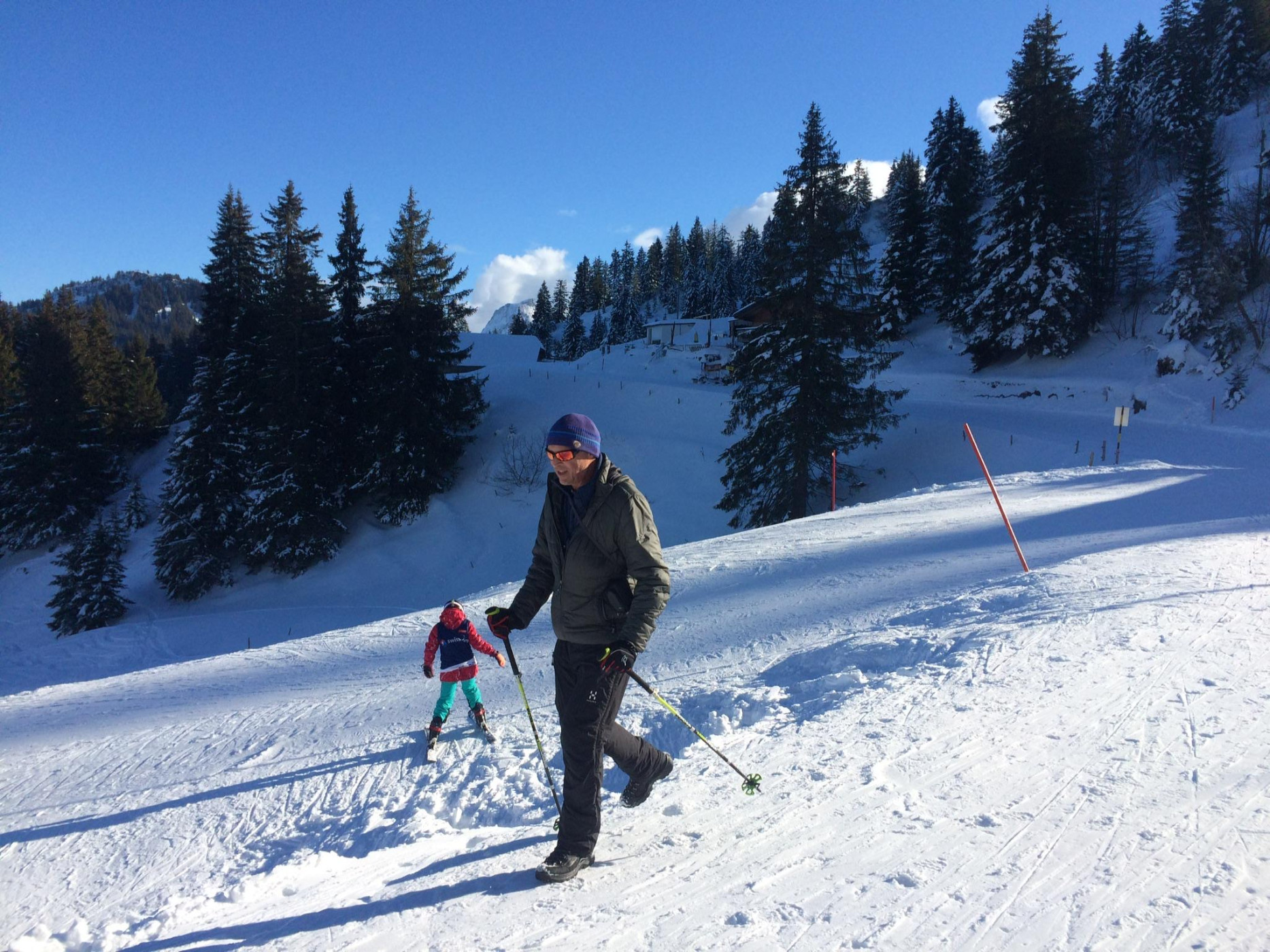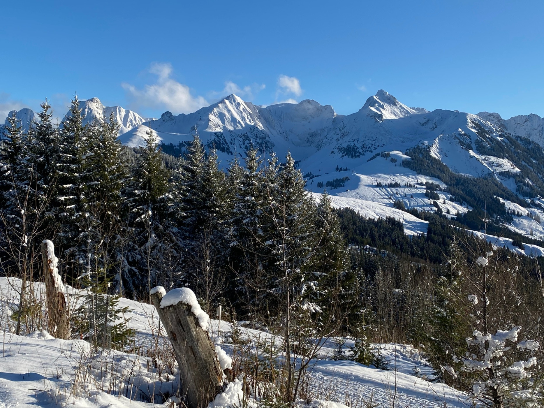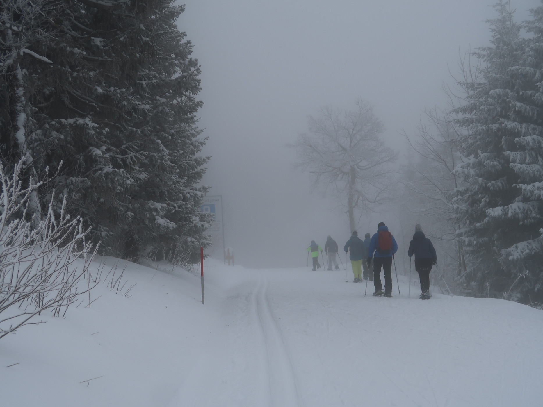 Naturpark Gantrisch - Wenn's unten graut und oben die Sonne vom blauen Himmel auf die Schneedecke scheint, dann ist der Naturpark Gantrisch genau richtig. Der Weg führt entlang der Loipe von Schwarzenbühl bis zur Otteleue. Dort kann der Weg bis nach Sangernboden folgt werden, oder man läuft wieder nach Schwarzenbühl zurück.