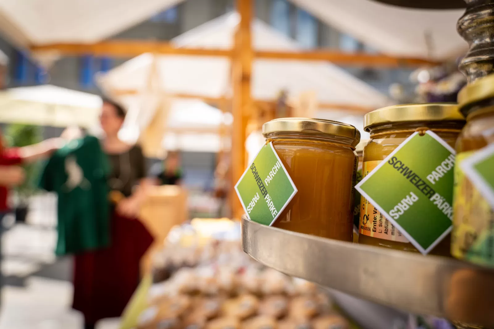 Ergänzend dazu können bestimmte regionale Spezialitäten das «Produktelabel» der Schweizer Pärke erhalten. Voraussetzung dafür ist, dass sie in den Regionalen Naturpärken hergestellt werden, bestimmte Nachhaltigkeits- und Qualitätskriterien erfüllen und die Betriebe zu den Zielen der Pärke beitragen. Im Gegenzug unterstützt der Park die Produzierenden aktiv bei der Vermarktung ihrer Produkte. So wurden bereits mehr als 2500 Produkte aus 14 Schweizer Pärken zertifiziert. Ihre Vielfalt trägt zur wirtschaftlichen Lebensfähigkeit der lokalen Branchen und zur Erhaltung der durch den Menschen geschaffenen Kulturlandschaft bei. Diese Produkte haben meist kurze Transportwege, wodurch ein Grossteil der Wertschöpfung in der Region bleibt und Arbeitsplätze geschaffen und erhalten werden.