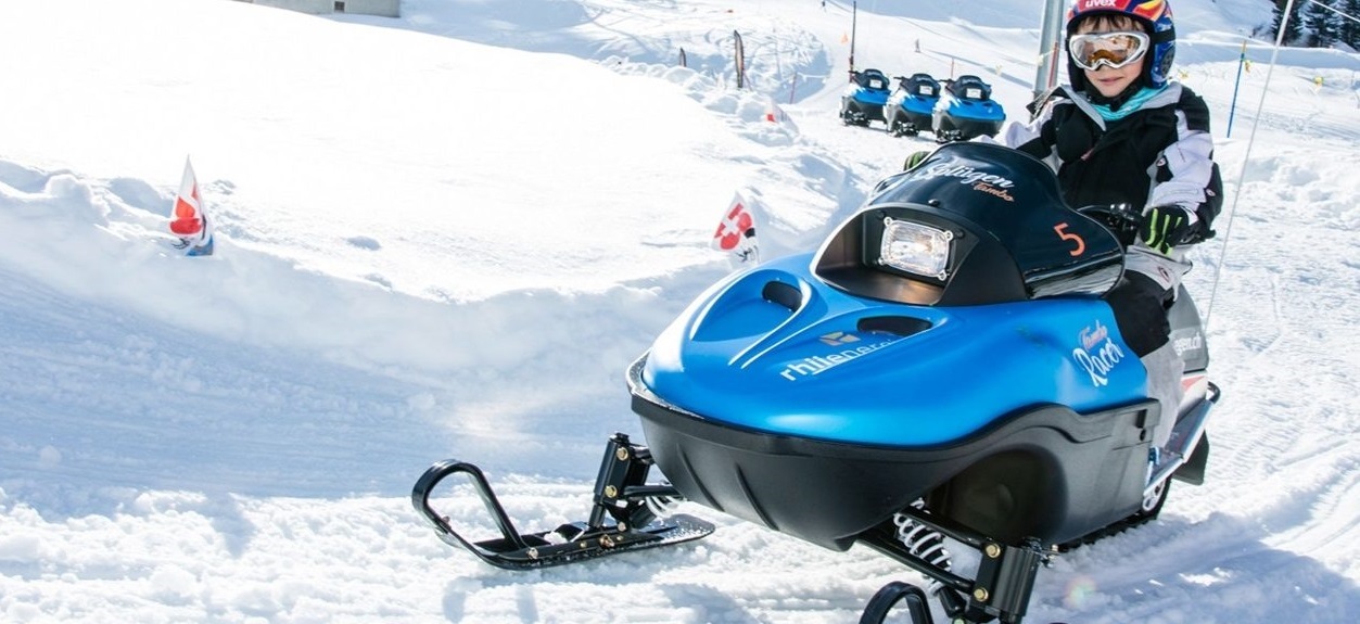 Children's area with 2 magic carpets, ski carousel, electric skidoos