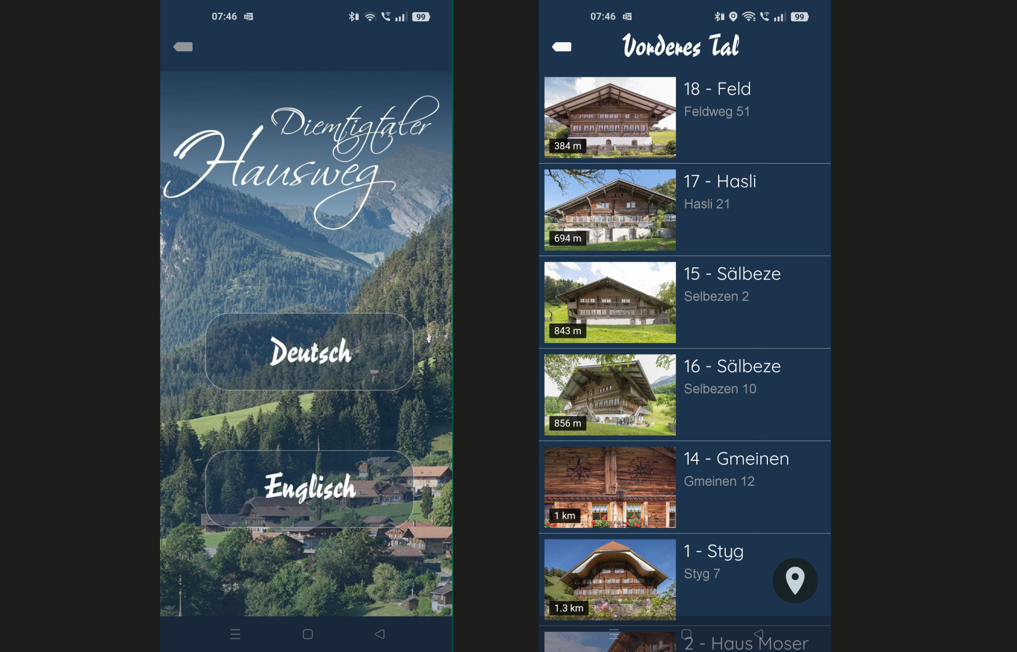 Naturpark Diemtigtal - Im Rahmen des Projekts «Diemtigtal Hausweg digital» wurden die bestehenden Themenwege digital umgesetzt. Der Inhalt wurde in eine App integriert und ausgebaut und ist nun in deutscher und englischer Sprache erlebbar.