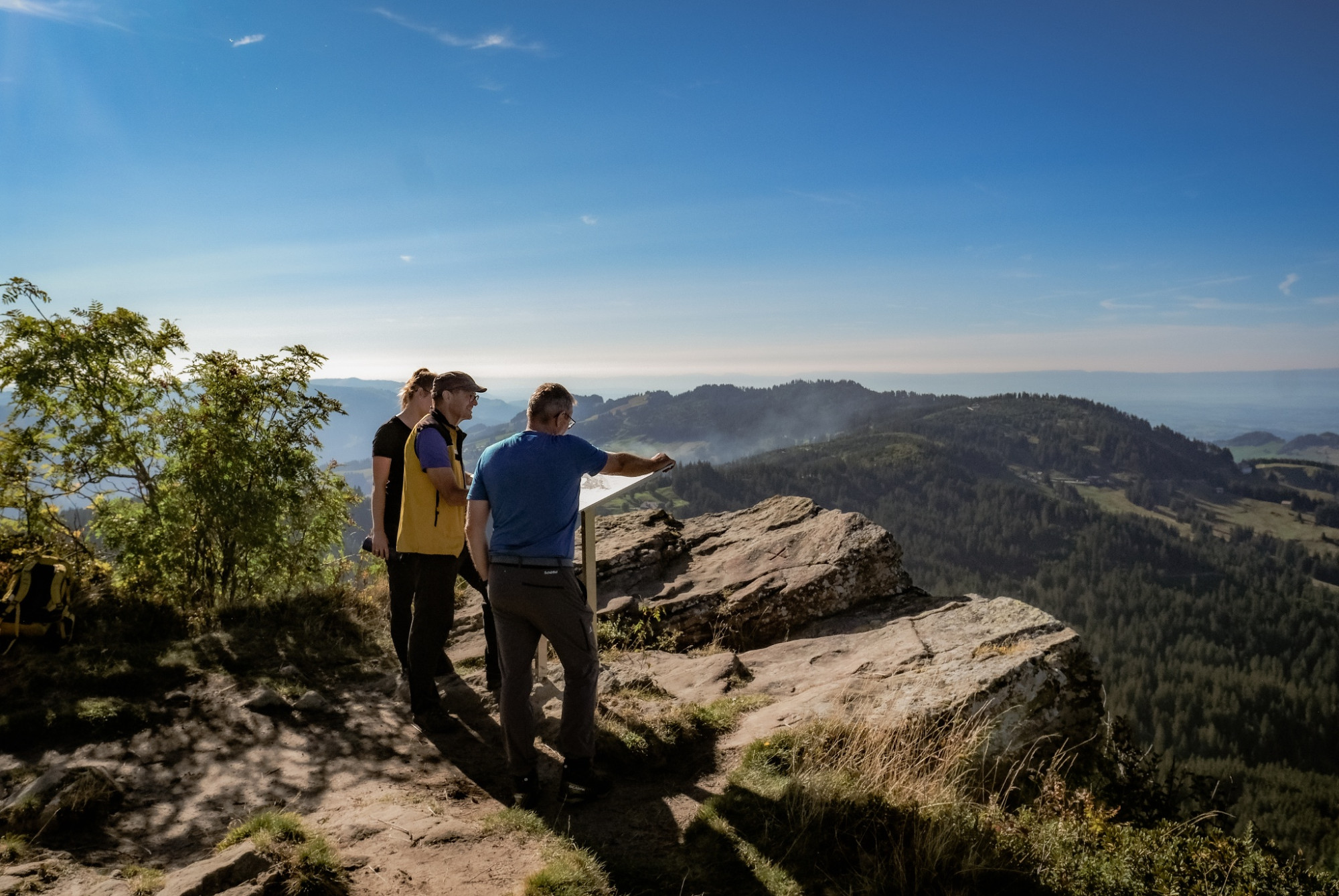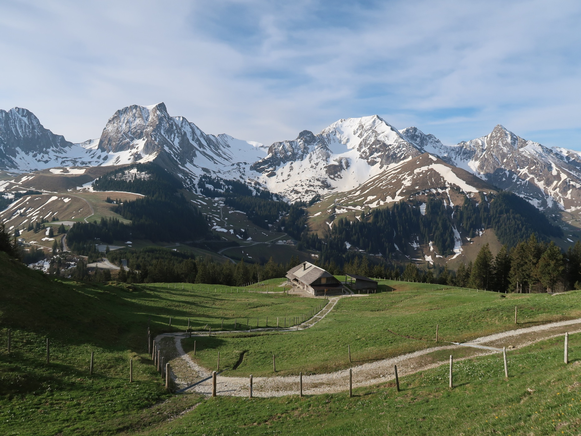 The 22-kilometer-long Gantrisch Panorama route definitely lives up to its name. To the south, the peaks of the Gantrisch range, including Nüneneflue, Gantrisch, Bürgle, and Ochse, are within easy reach, while snow-covered Alpine peaks can be seen further away. To the north, the view stretches over the Schwarzenburg region and the Bernese Midlands to Lake Biel and the Jura. On clear days, the view reaches as far as the Feldberg in the Black Forest and the Titlis and Pilatus mountains.