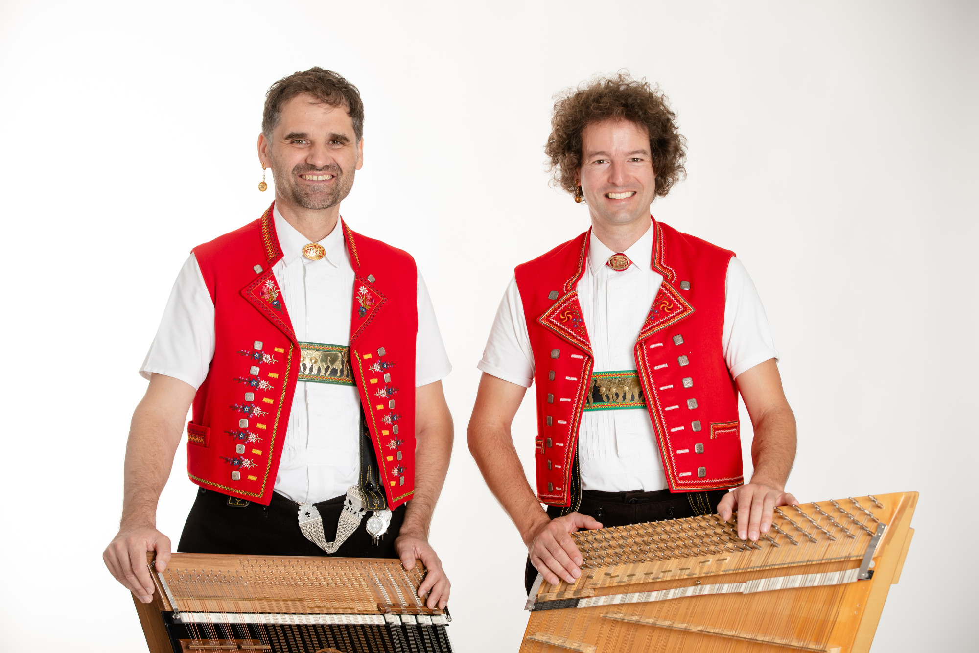 Die beiden Hackbrettspieler lernten sich in Arosa kennen und fühlten sich über ihr Instrument gleich verbunden. Neugierig begannen sie zu arrangieren, zu komponieren und neue Klangwelten für zwei Hackbretter zu entdecken – von der Klassik über barocke Originalwerke bis hin zur traditionellen Volksmusik. Ihr Herzensanliegen ist es, die ganze Seele des Hackbretts hörbar zu machen – zart, kraftvoll und voller Ausdruck.