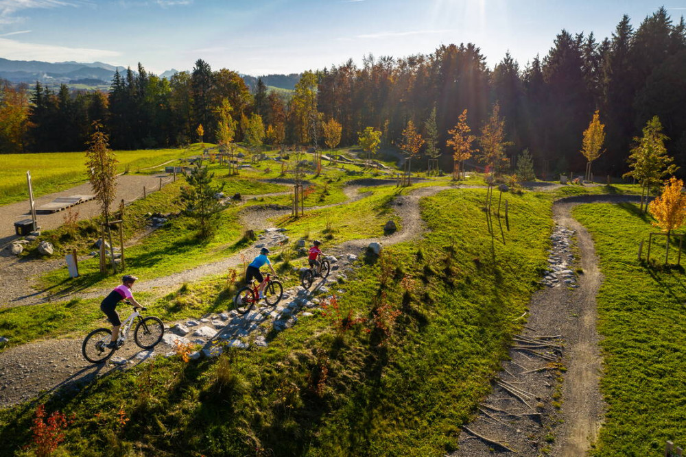 Jump lines, pump tracks, stairs, banked turns, learning and adventure courses: on around 2,000 square meters, the Swiss Bike Park combines the needs of elite and recreational sports. The park is available to everyone free of charge for training.