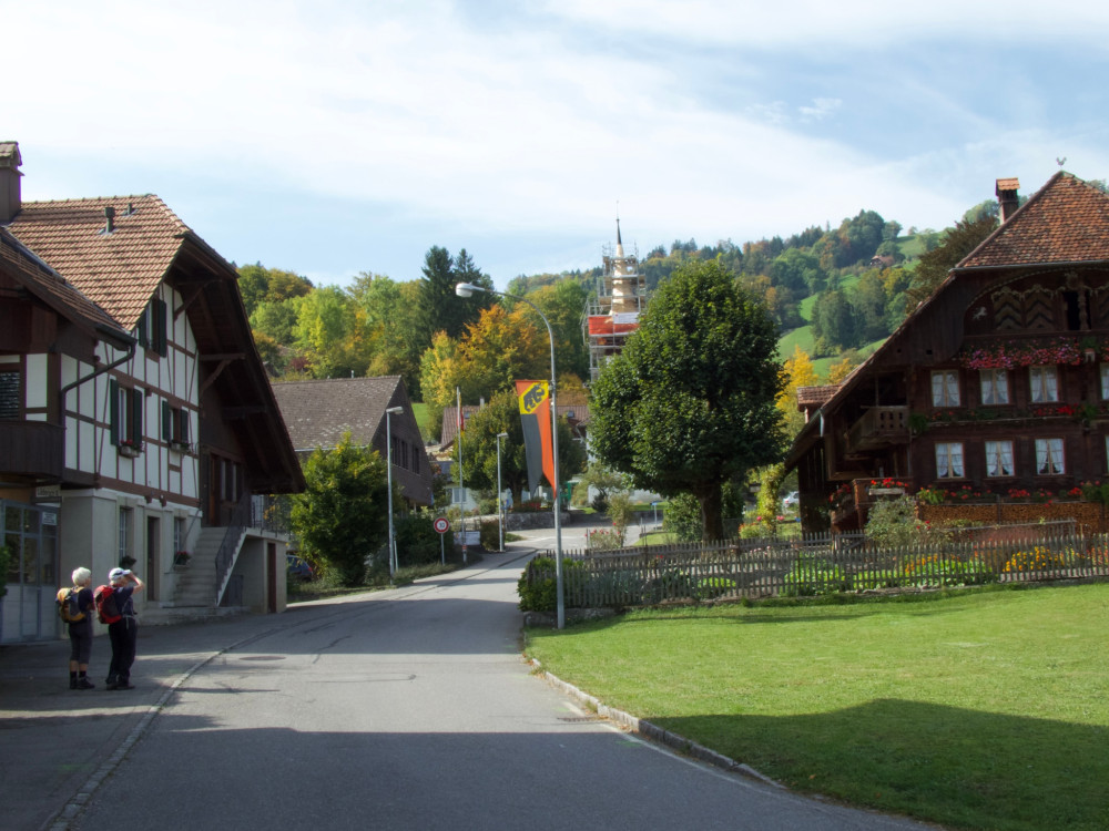 The twelfth stage of the Jakobsweg leads from Wattenwil to Schwarzenburg. The route passes the monastery ruins in Rüeggisberg and the church Wahlern before Schwarzenburg. On this route, you hike through the intact pre-Alpine landscape of the Gantrisch Nature Park.