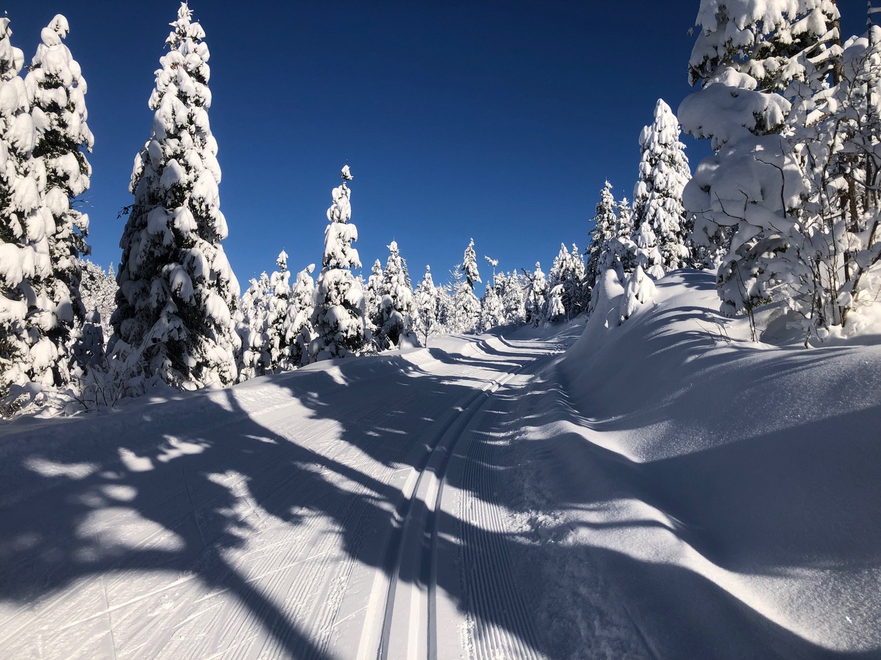 You can watch the condition of the trails, how much snow is on the ground, or whether the sun is shining live via the webcam. Which tracks the grooming machine has recently set can be tracked live here.