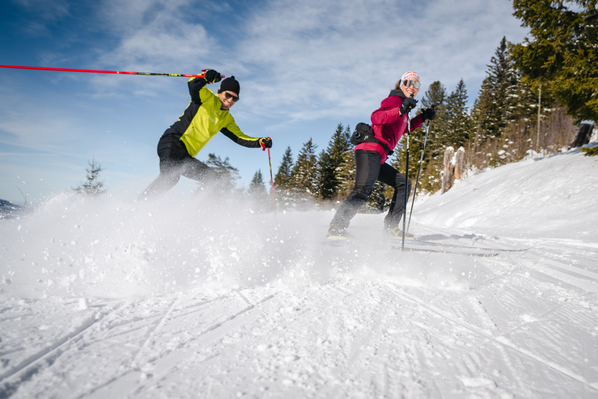 Guests without their own equipment can rent classic and skating cross-country ski gear at three locations for reasonable prices. It is self-service, and payment is made on site in cash or via Twint.