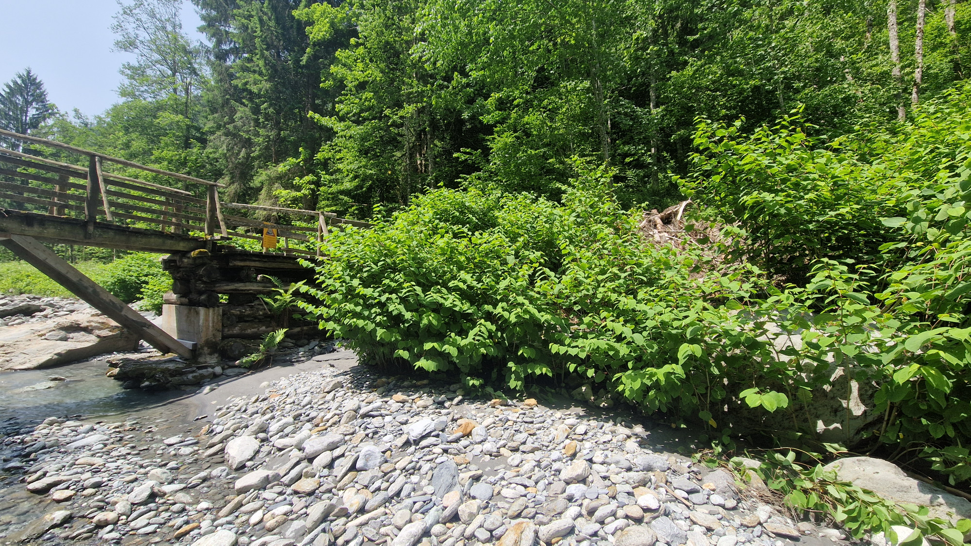 Il y a plusieurs espèces de plantes envahissantes aux abords de ces rivières. Une d'entre elles, la Renouée du Japon, est particulièrement agressive. Douée d'un potentiel de dispersion remarquable, cette espèce se repend au détriment des écosystèmes locaux. Nous commençons donc une lutte qui durera sur plusieurs années, au confluent du Besson et du Trient.