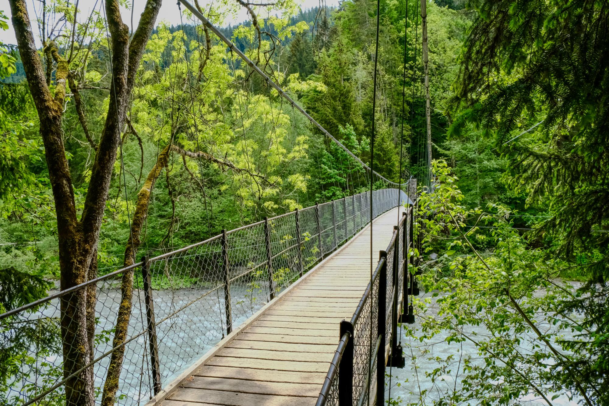 Parc naturel régional Gruyère Pays-d'Enhaut - The Turrian Bridge is the oldest suspension bridge in French-speaking Switzerland. It crosses the Sarine with a view of the Ramaclé alluvial zone, classified as a site of national importance.