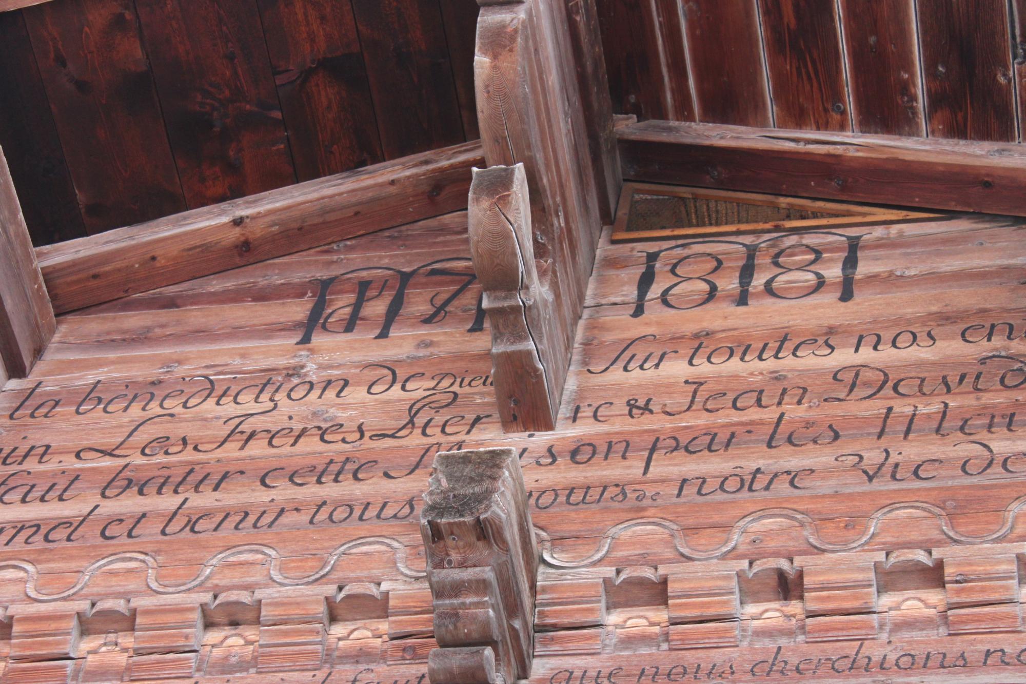 Parc naturel régional Gruyère Pays-d'Enhaut - These buildings all share a common characteristic: their façades are either carved or painted. At the summit of each home, you will see its date of construction, a text which is often biblical, as well as the name of the owners and the carpenter. These carpenters inherited a beautiful trade leaving behind masterpieces to be enjoyed for centuries. The facade of the Auberge du Cheval blanc, constructed in 1810 by the carpenter Moïse Henchoz, is especially remarkable.