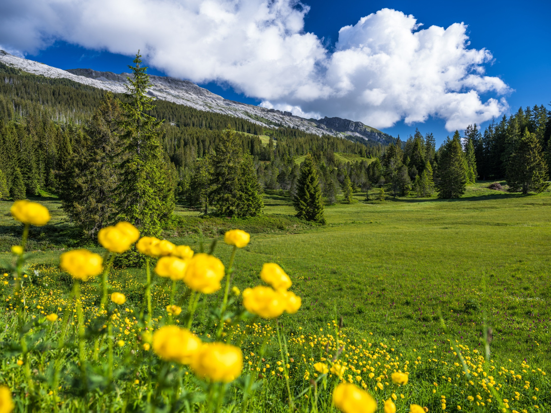The Schrattenfluh, the most obvious karst mountain range in the biosphere, is part of the strictly protected core zone and one of the most pristine karst landscapes in Switzerland. From a distance, it appears practically vegetation-free and is actually only sparsely vegetated. The Schrattenfluh impresses not only above ground with bizarre patterns in the karst rock but also underground with its extensive cave system. Yet, some pretty cushion plants and alpine roses, which the people of Entlebuch also call «Steirösli», grow on the Schrattenfluh. On the northern side, there are steep, rugged rock walls with large scree fields that then transition into alpine meadows and moor areas. Thanks to this variety of different habitats, it features a great diversity of animal and plant species.
