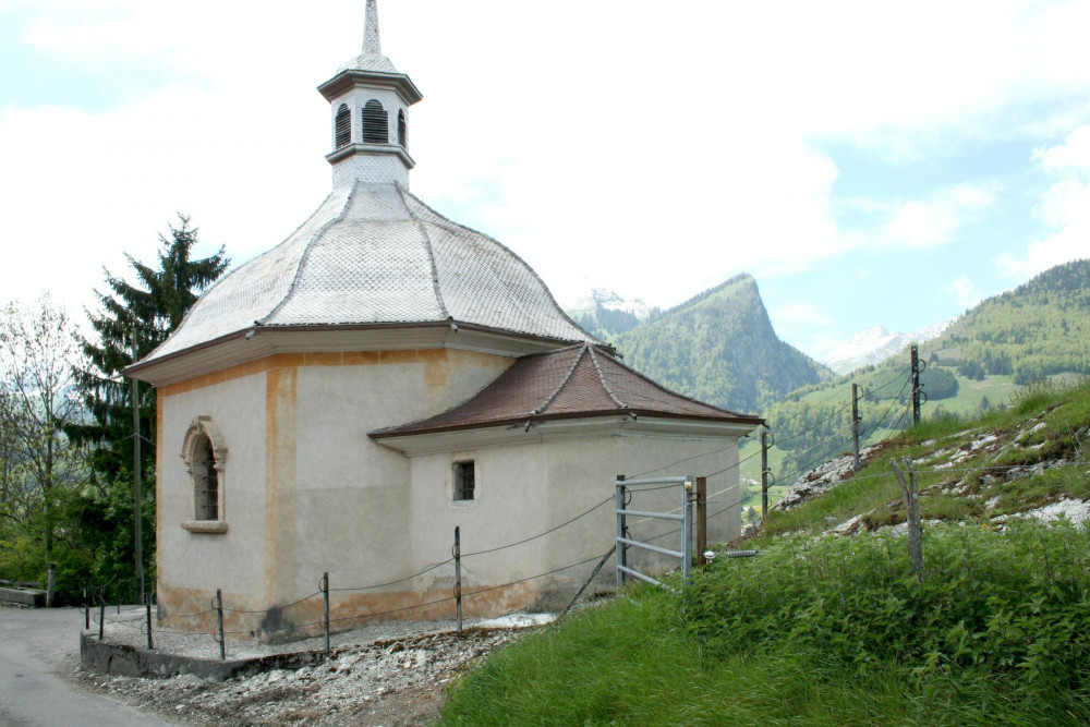 This chapel is also known as Notre-Dame-des-Neiges (our lady of the snow) chapel because according to legend, the Virgin Mary herself chose the spot for this chapel by making snow flakes fall here in August. Built in 1684, the chapel has an octagonal layout and a bell tower overlooking an imperial roof. The capstone of the vaulted ceiling is decorated with the founders' shields: the Castella brothers (Neirivue parish priest), Jean (Broc prior) and Jacques (lieutenant). Their coat of arms are also featured on the 1685 baroque retable.