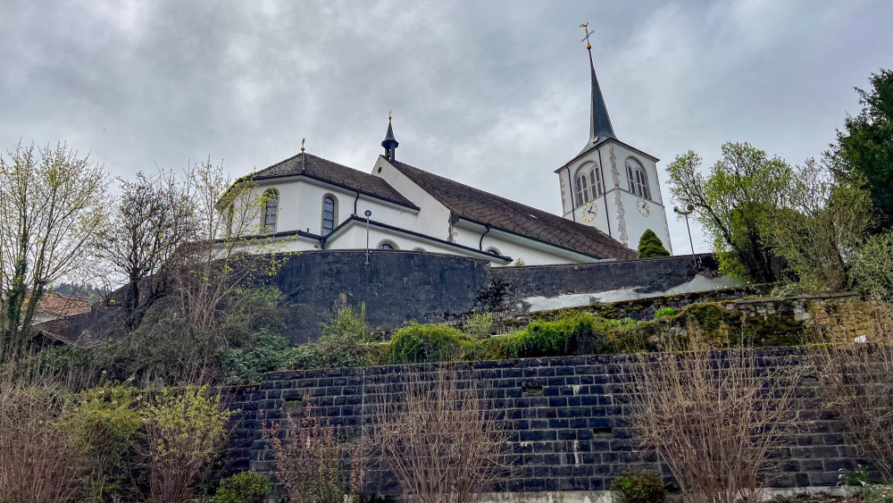 Built between 1619 and 1633, it was restored in 1999. Its rococo style high altar was created by artisan Charles Pidoux with the paintings by Gottfried Locher.