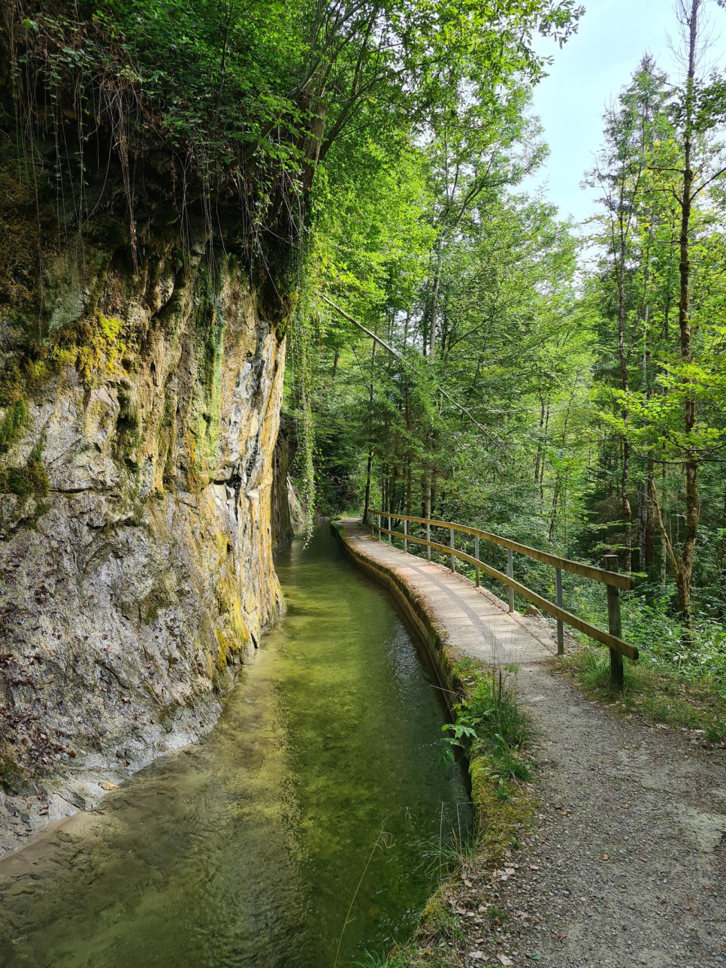 After crossing the main road, you reach Farbsäge and shortly after enter the unique 19th-century Kanalweg. The impressive canal winds along the rock walls. Once the terrain opens up again, you will even come across a climbing garden and a barbecue area. At the canal entrance, you find a wetlands area of national significance.