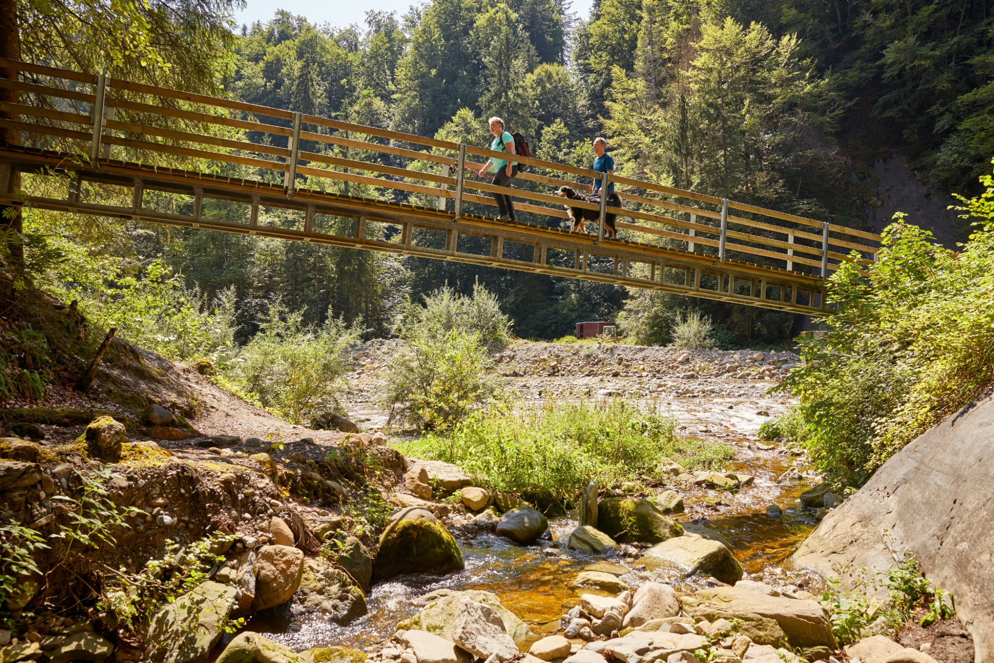 The hiking route starts at the Entlebuch train station and leads directly to the riverbed of the Große Entlen, which gave the valley its name. You walk through the forest and listen to the babbling of the river. At Farbschachen is the versatile energy playground with a barbecue area. On the next short stretch, you cross the Entlen twice via a charming wooden bridge. Two info boards offer fascinating information about the former small hydroelectric power plant.
