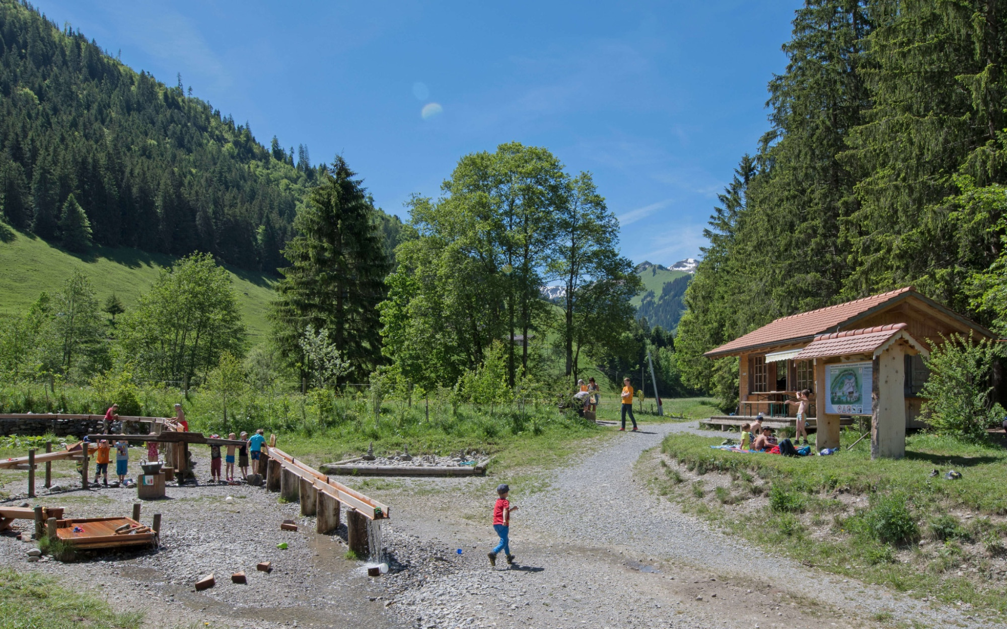 Naturpark Diemtigtal - Along the valley hiking trail and the Fildrich, you walk downhill with your family. Do you know our water playground? A stop here is almost a must for the little explorers.