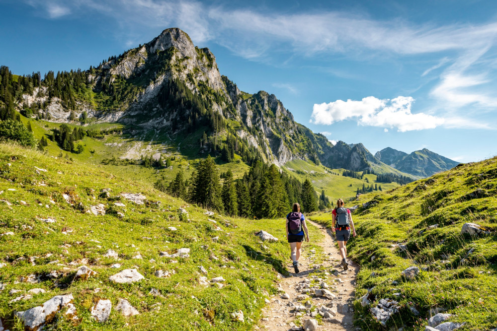 After the Breccaschlund, walk along the Euschelspass to Jaun, the only German-speaking village in La Gruyère, and home to a magnificent waterfall, fed by waters from the Vanil Noir. The trail continues on through the breathtaking Gastlosen.