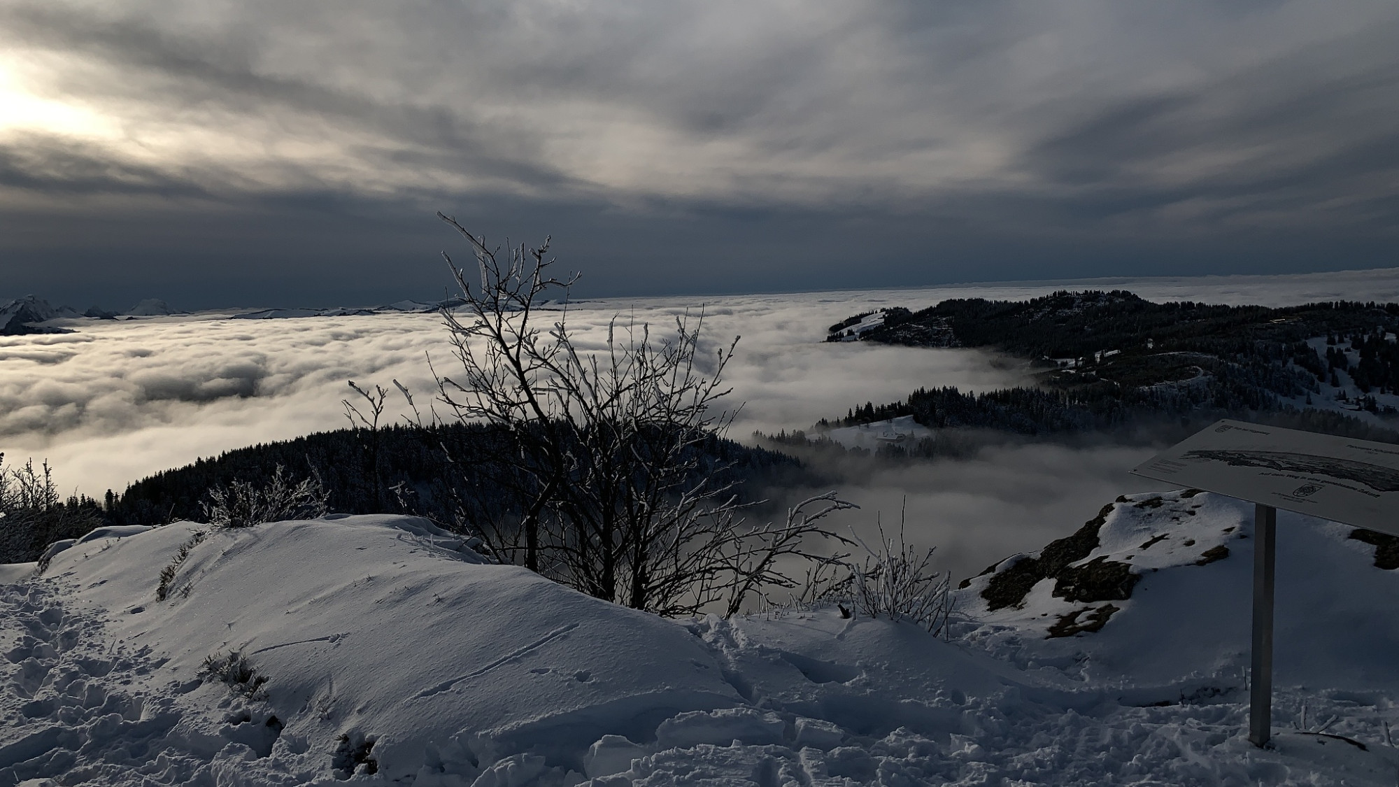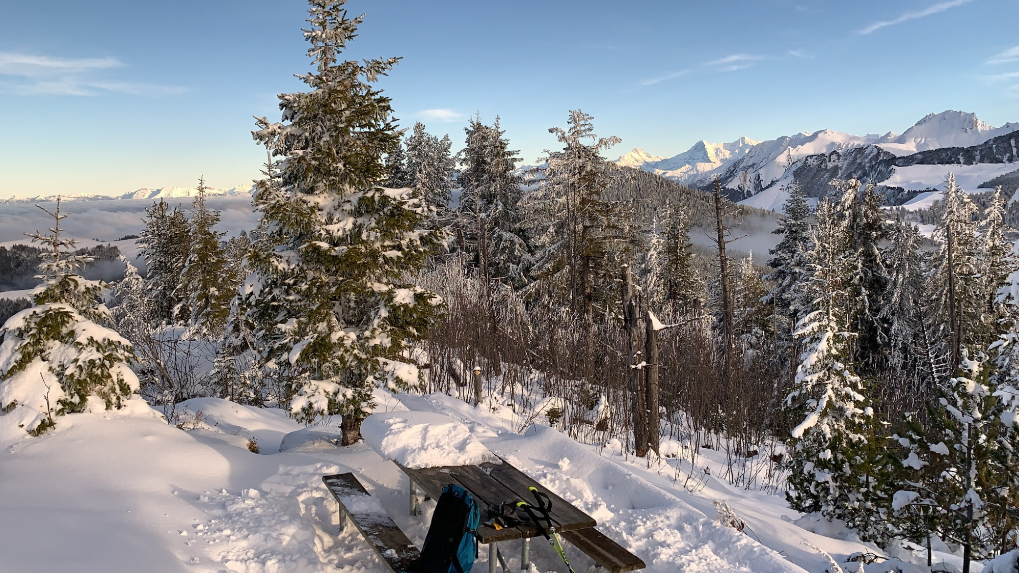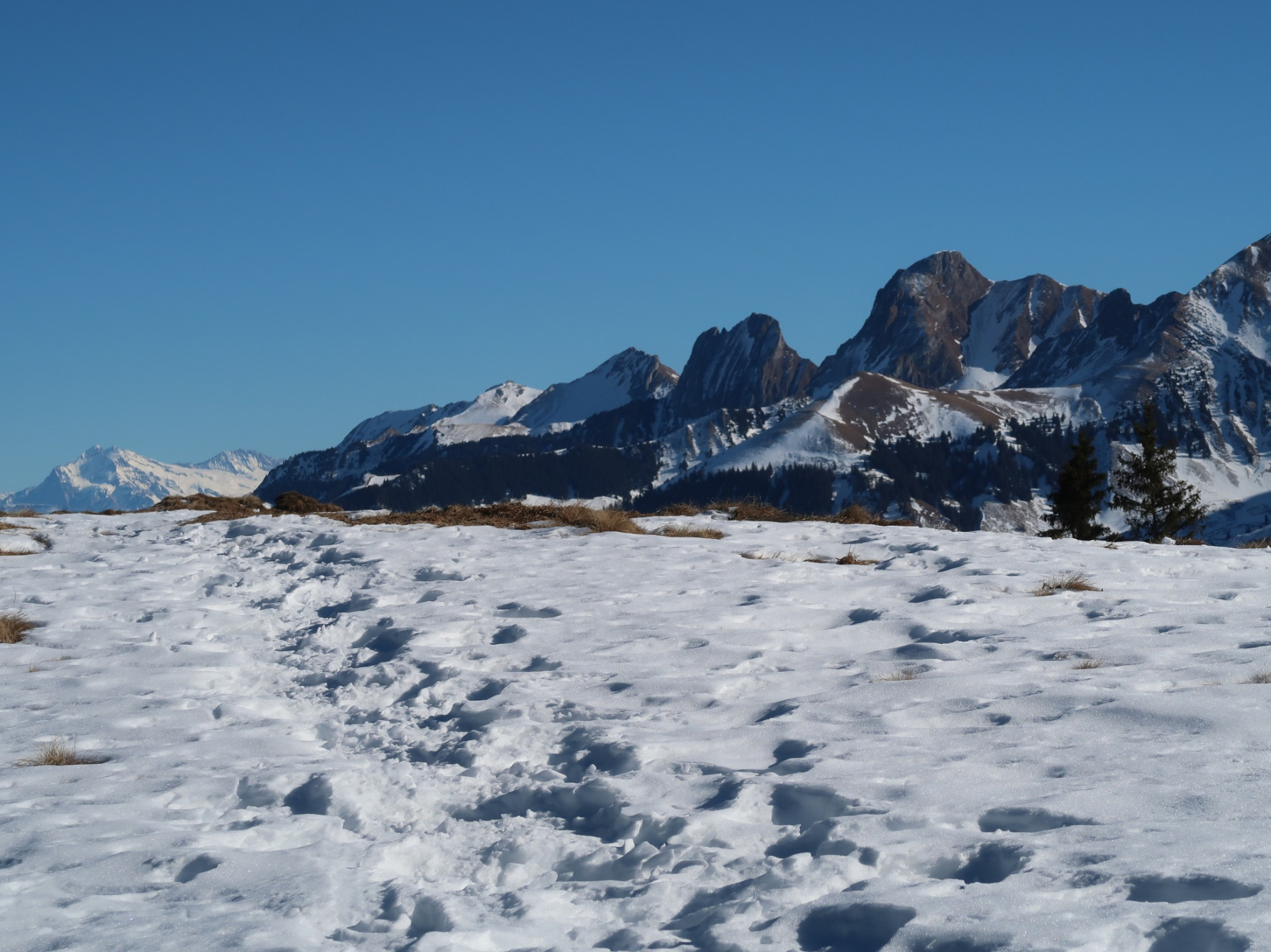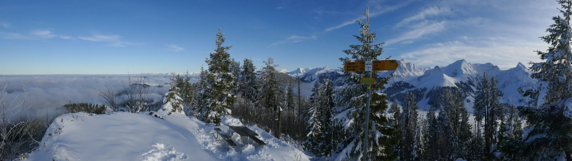 Naturpark Gantrisch - The summer classic is also worth hiking in winter as a mostly unmarked trail. From the watershed, follow the Panoramaweg signposts. The view of the peaks of the Gantrisch range changes continuously, as does the view to the right across the Mittelland and towards the Jura.