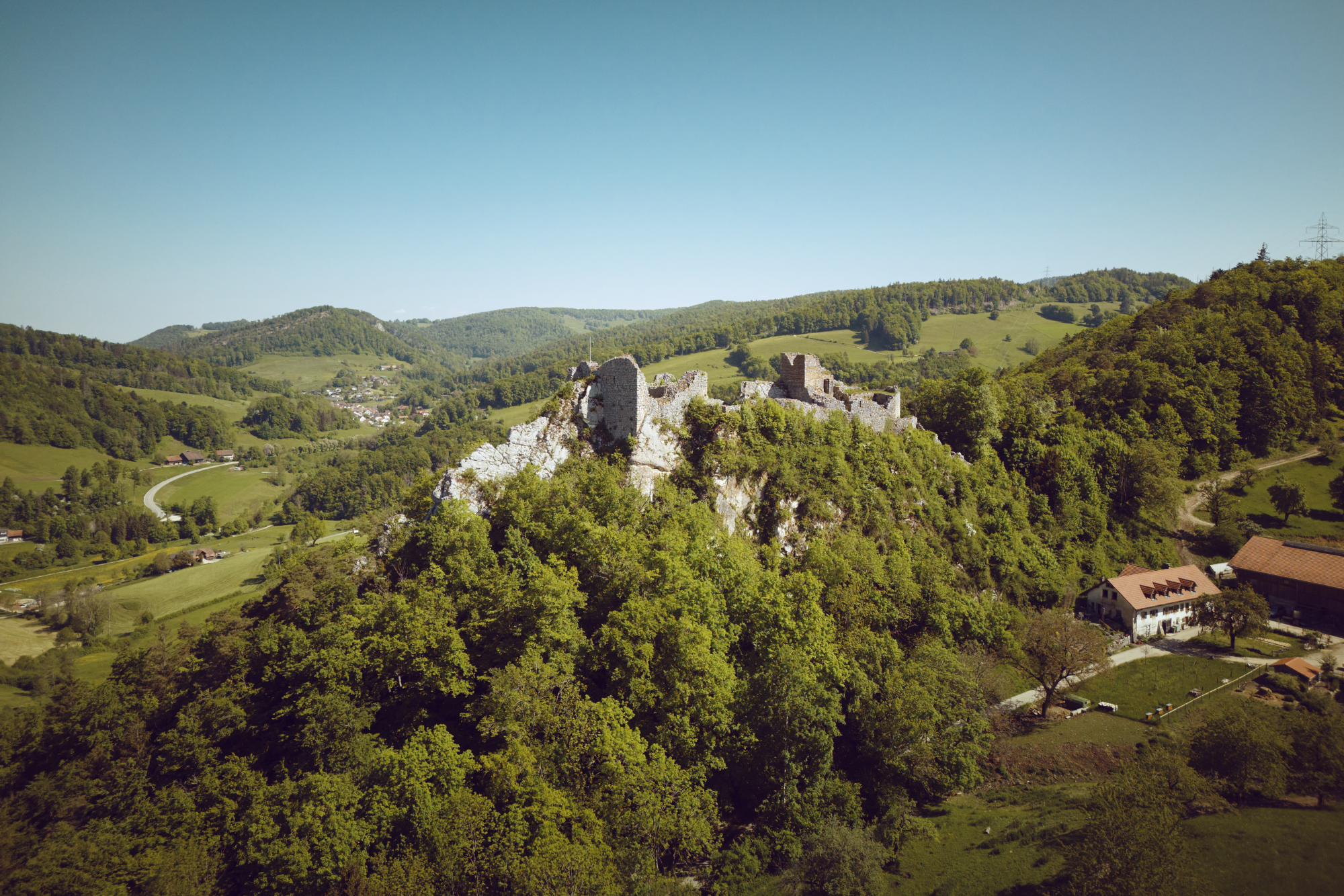 Alt-Bechburg, eine der grössten Burgruinen des Kantons SO, mit gut erhaltener Ringmauer und herrlicher Aussicht auf die Jurahügel und das Gebiet Oberer Hauenstein.