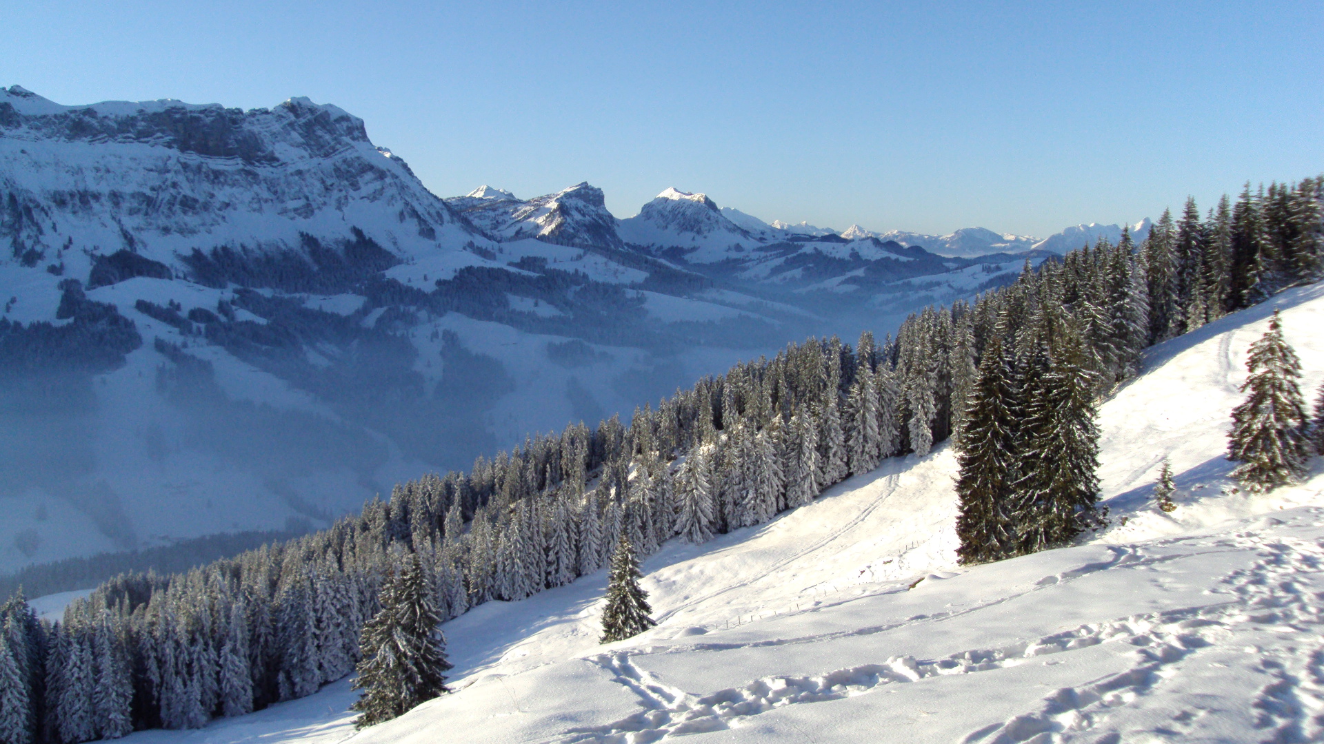 UNESCO Biosphäre Entlebuch - Randonnée d'hiver départ depuis la terrasse ensoleillée de Marbachegg.