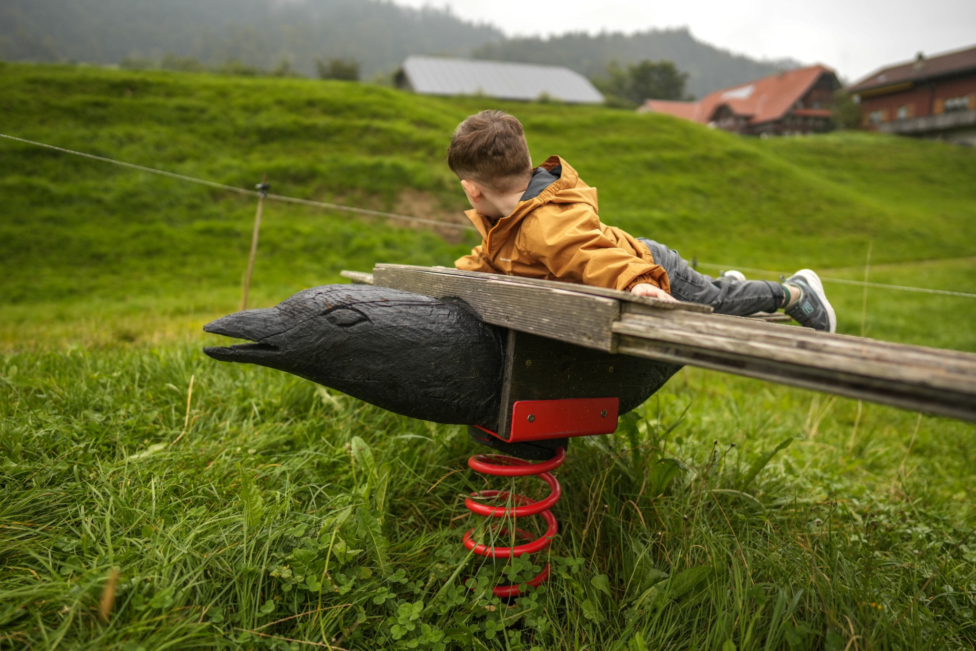 Dans la boutique ou à l'automate en libre-service de la fromagerie de montagne Marbach, vous pouvez acheter un équipement d'aventure pour CHF 12 (oiseau chantant en terre cuite, petite lampe de poche et bille dans une boîte à goûter) ainsi que le livre illustré « Sagenhaftes Gezwitscher » de l'autrice Gaby Kaufmann pour CHF 19. Les deux ne sont pas indispensables, mais fortement recommandés, surtout si le sentier est parcouru avec des enfants.