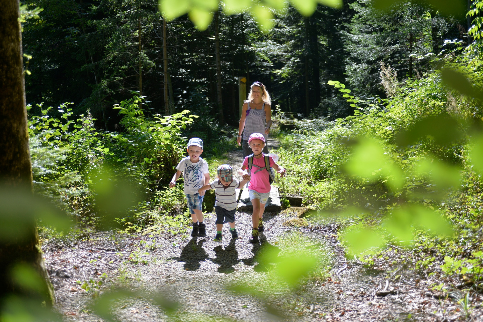 Sur des chemins étroits de gravier, le chemin suit encore la rive du ruisseau jusqu'à Schüpfheim. Pour ceux qui n'ont pas encore assez, un grand terrain de jeux avec des foyers attend juste avant la fin de l'étape dans la forêt des légendes (Sagenwäldli).