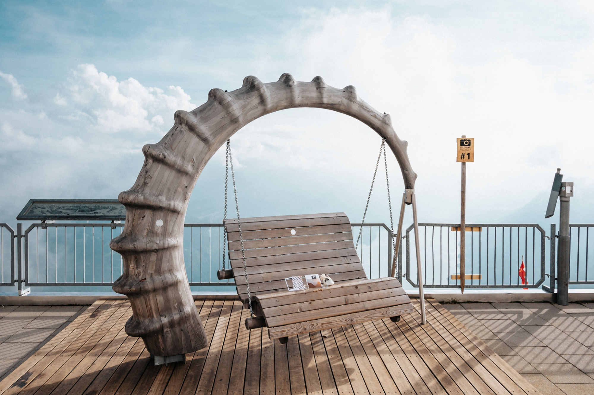 Le Fotokit pour CHF 19.50 contient pour chaque poste photo le gadget adapté. Utilisez-le pour réaliser des photos encore plus passionnantes, créatives et variées. De plus, dans un petit livret associé, vous trouverez pour chaque poste photo des défis et des conseils photo instructifs. Le Fotokit peut également être acheté dans la boutique en ligne. Avec la confirmation de commande, vous recevez le Fotokit à la station de vallée.