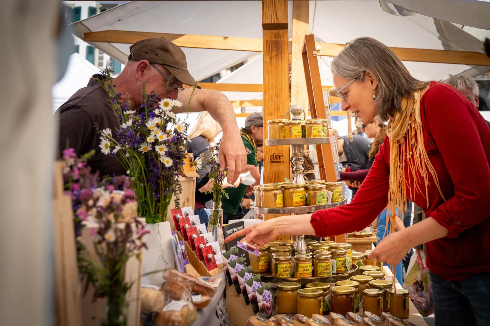 Une offre riche en spécialités culinaires et en produits régionaux vous attend au marché des parcs – frais, local et durable ! Les gastronomes y trouveront tout ce que leur cœur et leur estomac désirent : salsiz et tourtes aux noix des parcs grisons, fromages d’alpage et mueslis maison, cerises du parc jurassien d’Argovie, capuns et meringues et bien d’autres choses encore. À agrémenter d’un bon verre de vin valaisan, d’une bière 100 % régionale ou d’un sirop aux herbes. Il y en a pour tous les goûts !