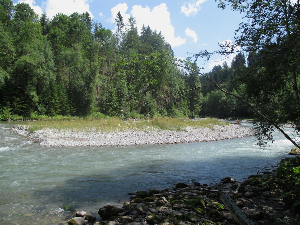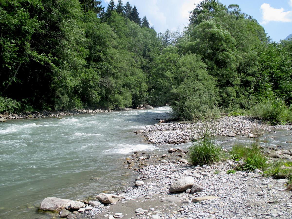 Parc naturel régional Gruyère Pays-d'Enhaut - La zone alluviale de la Sarine est située au sud du village de Château-d’Œx, à 900 m d’altitude. L’environnement dans lequel la Sarine s’écoule à cet endroit est proche de son état naturel, avec une richesse végétale importante. La dynamique du cours d’eau et la position des différents chenaux dans la zone alluviale sont en constante évolution, car la Sarine n’est pas aménagée ni endiguée sur ce tronçon.