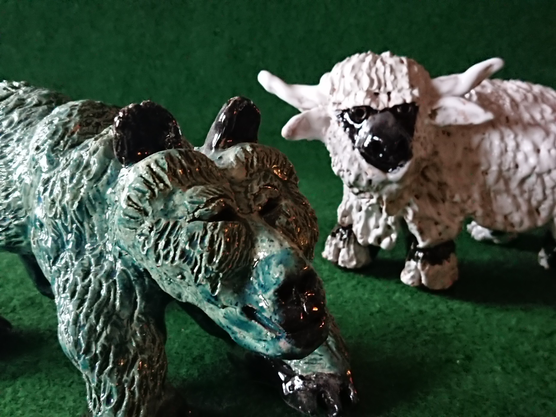 Im Gewölbekeller mit seinem alten Mauerwerk stehen modellierte Tierfiguren von Fritz Wyss. Die kleinen Plastiken wirken lebendig und zeigen Tiere mit viel Ausdruck. Im selben Raum hängen grossformatige Zeichnungen von Caroline Singeisen aus Bern. Ihre Bilder zeigen geheimnisvolle Tierwesen, die an Traumbilder oder mythologische Figuren erinnern.