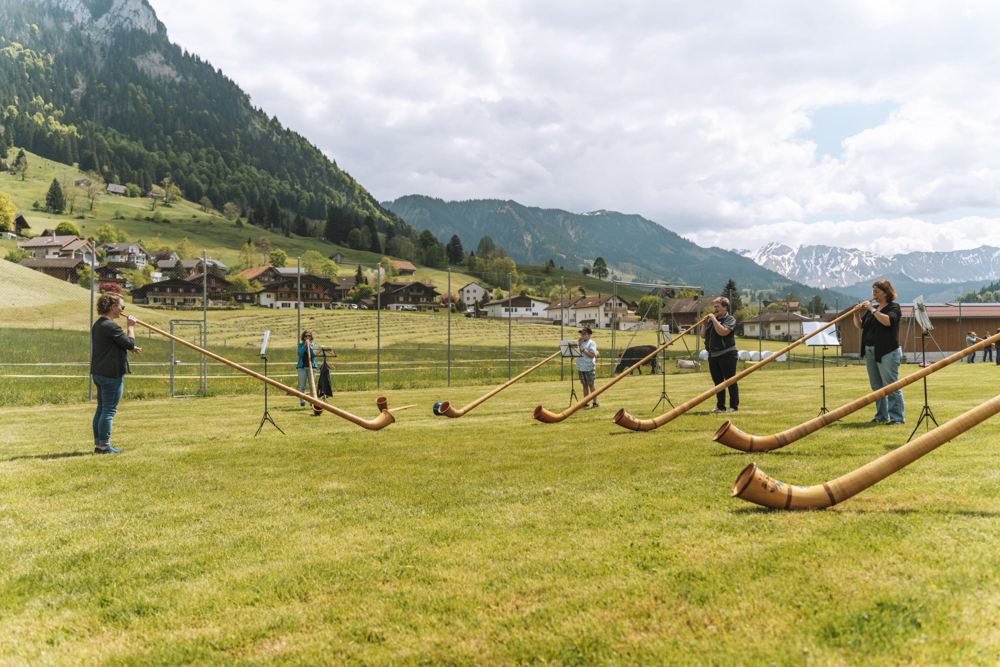 Fortgeschrittene Alphornspieler. Gespielt wird mit dem Alphorn in Ges / Fis.