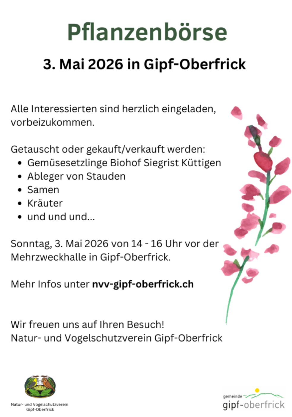 Der Natur- und Vogelschutzverein Gipf-Oberfrick freut sich auf Ihren Besuch!