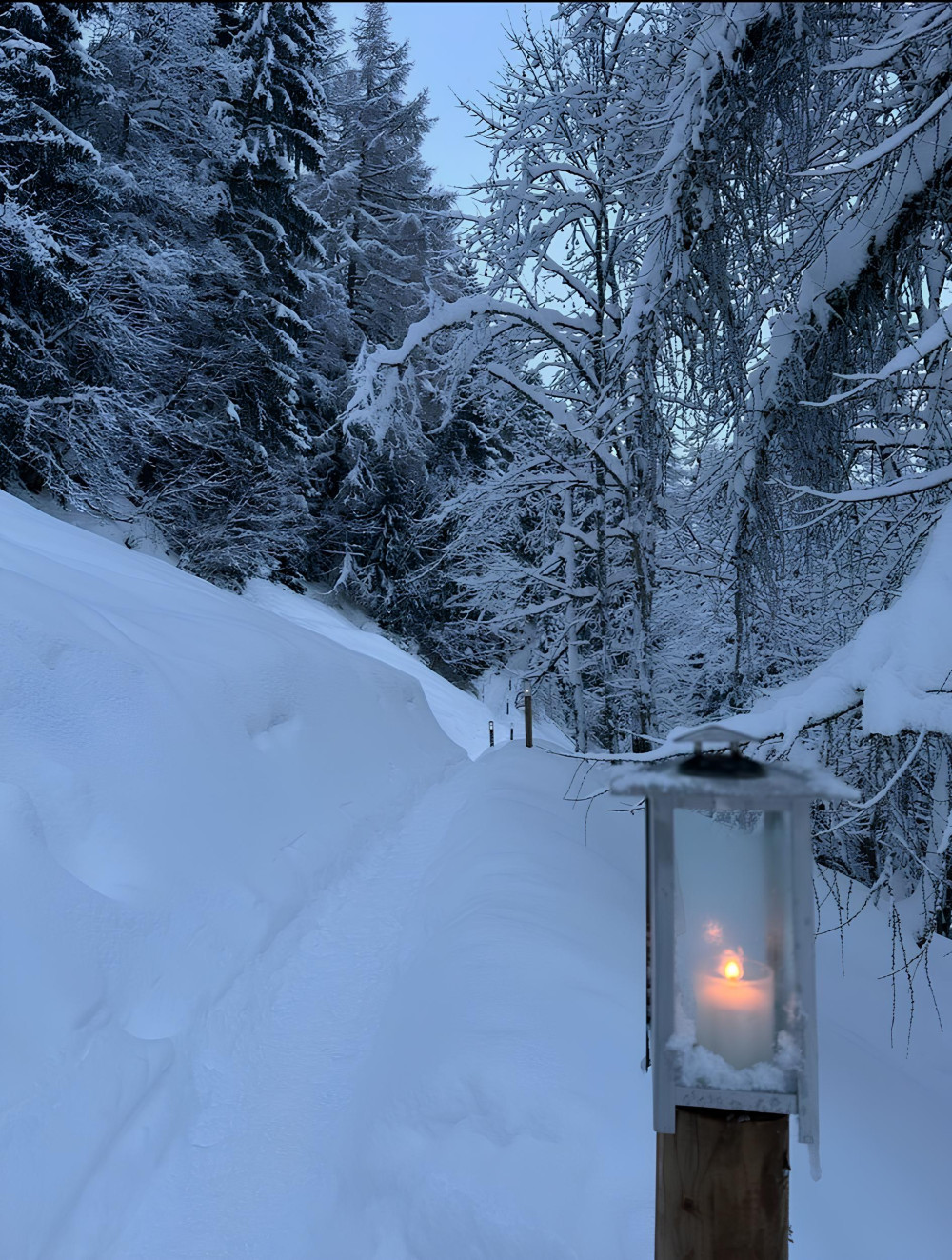 Entlang vom Panoramaweg von Ernen nach Mühlebach erhellen abends Laternen den Weg und laden so zu einem besinnlichen Spaziergang ein.